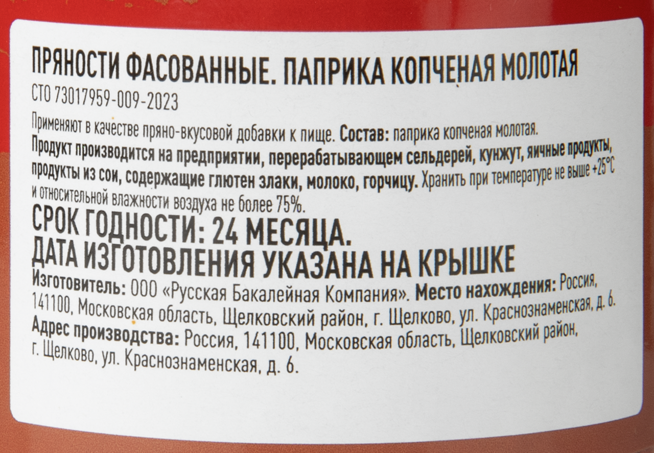 Паприка красная молотая копченая.