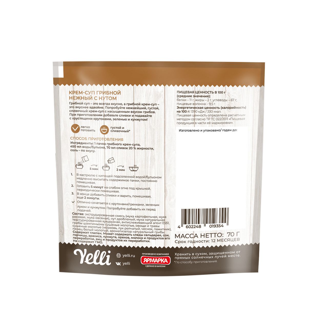 Крем-суп Yelli грибной нежный с нутом, 70г