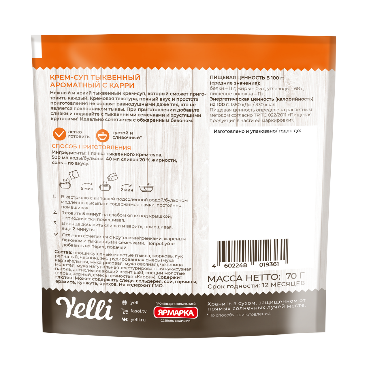 Крем-суп Yelli тыквенный ароматный с карри, 70г