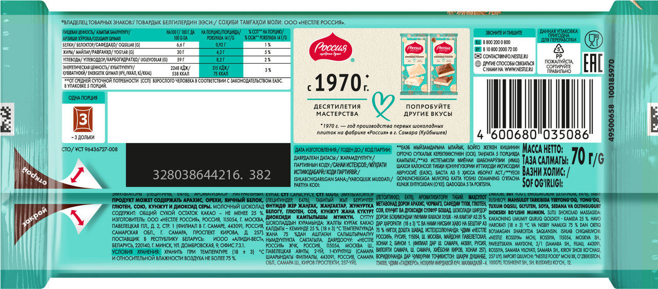 Шоколад Россия Щедрая душа молочный шоколадные пузырьки, 70г