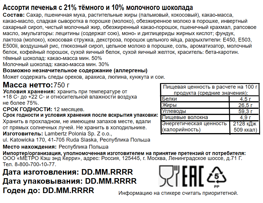 - Вид печенья Ассорти