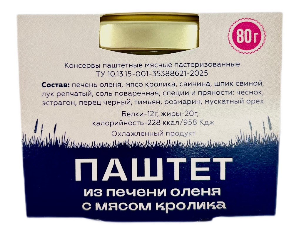 Паштет Мушкино из печени оленя и мяса кролика, 80г