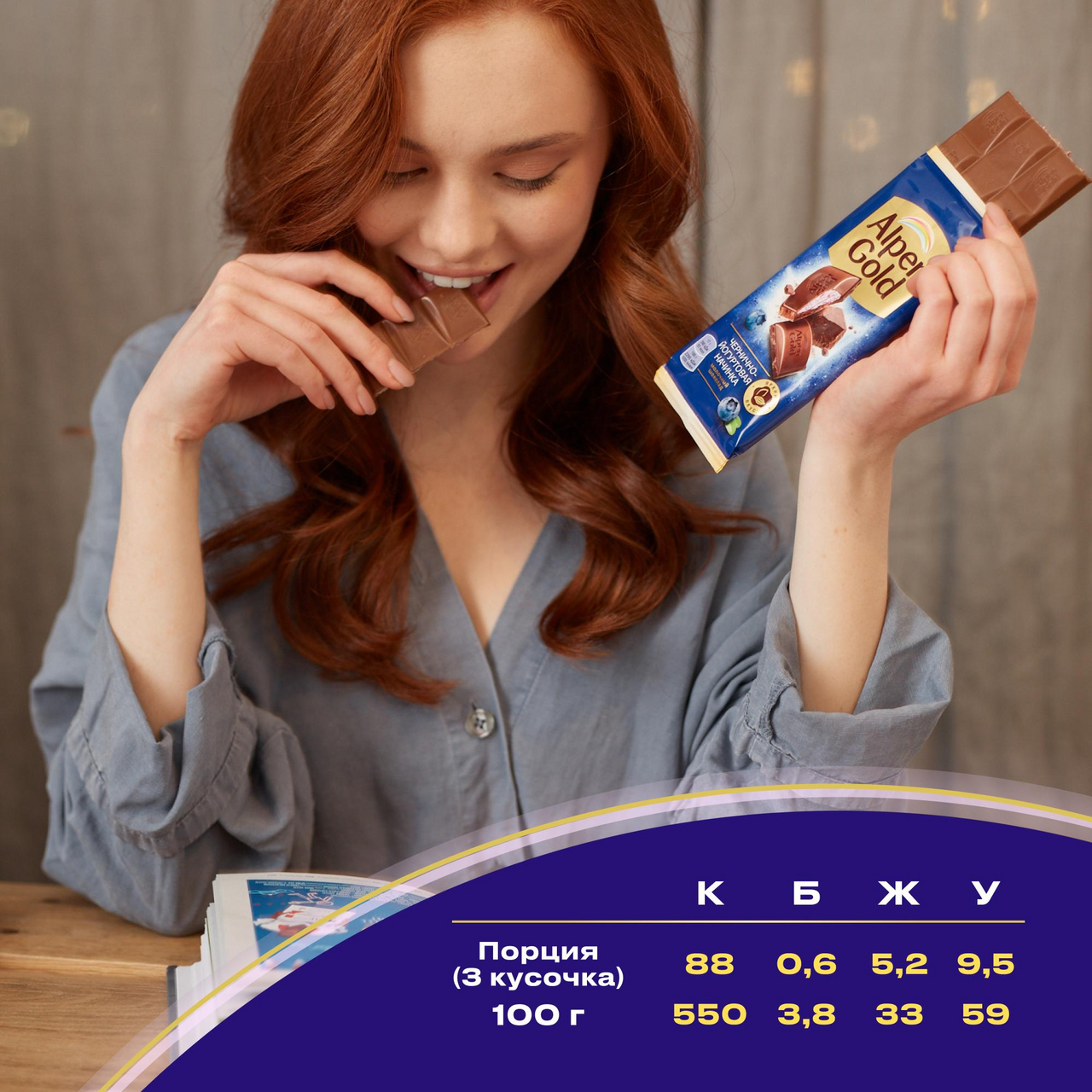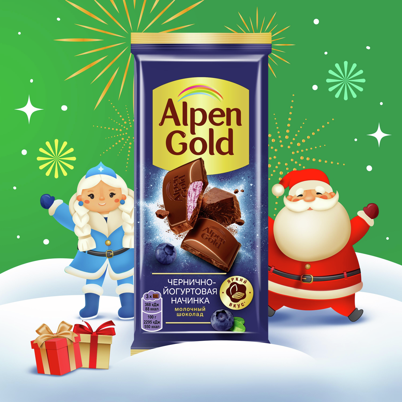 Участвует в конкурсе: Выиграйте кофемашину на сладкое! Совершите покупку товаров-участников на сумму от 1500₽ с 23 октября 2025г. по 14 января 2026г. и получите шанс выиграть кофемашину или другие сладкие призы! Чем больше покупок - тем больше шансов на победу! Подробнее об акции - https://cdn.metro-cc.ru/ru/mndlz_2025.pdf. Alpen Gold уже более 25 лет радует ценителей шоколада необычными вкусовыми сочетаниями. В широком ассортименте Alpen Gold представлены как классические вкусы молочного, темного и белого шоколада, так и неординарные вкусовые миксы: каждый любитель сладкого найдет среди них что-нибудь для себя. Молочный шоколад Alpen Gold с чернично-йогуртовой начинкой — это сочетание яркого черничного и нежного шоколадного вкусов в мягкой, тающей во рту текстуре. Шоколад Alpen Gold производится по высоким стандартам качества из какао-продуктов, заряжает ярким настроением и приглашает к вкусным открытиям. Шоколад с начинкой Alpen Gold в компактной упаковке можно взять с собой на работу, учебу, в поездку или в гости к чаю. Плитка шоколада Alpen Gold — это сладкое удовольствие в каждом кусочке. А еще — простой способ сделать свой день ярче и веселее, и поделиться радостью с друзьями и близкими людьми! Добавь Alpen Gold в каждый момент!
