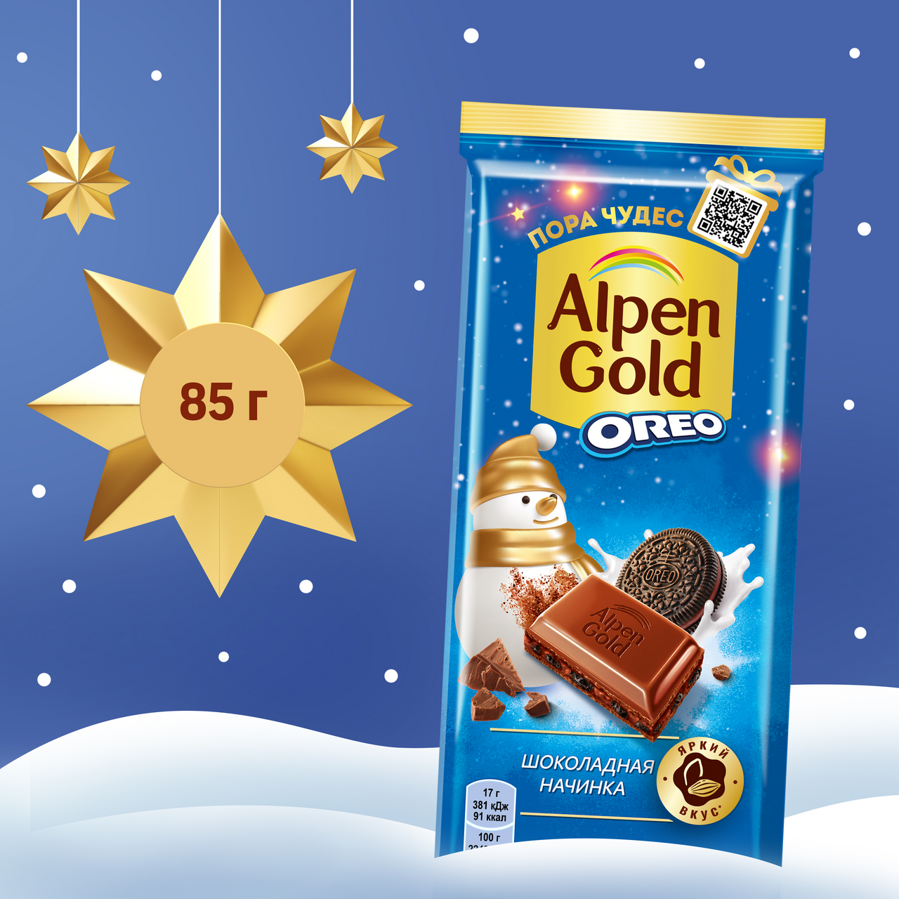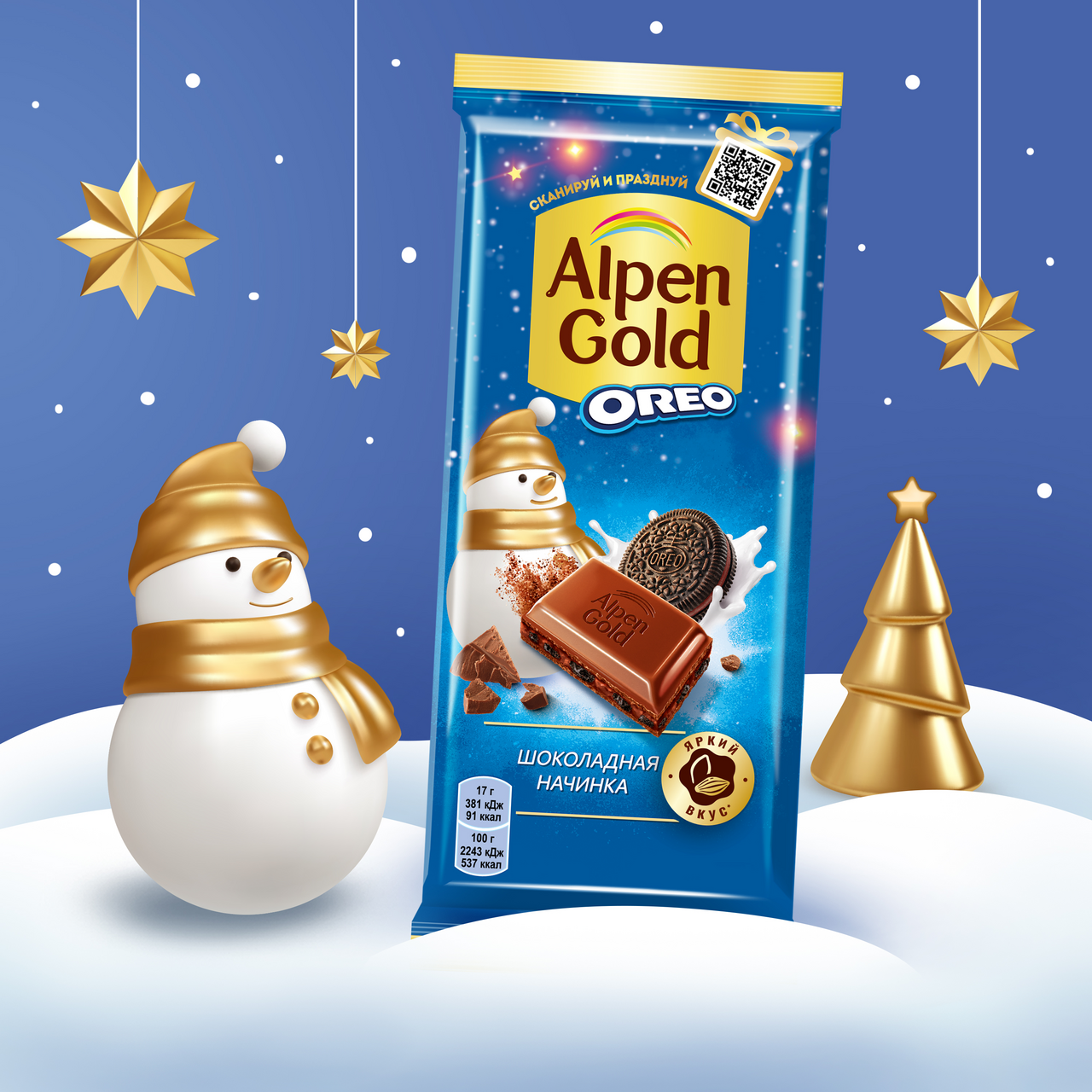 Участвует в конкурсе: Выиграйте кофемашину на сладкое! Совершите покупку товаров-участников на сумму от 1500₽ с 23 октября 2025г. по 14 января 2026г. и получите шанс выиграть кофемашину или другие сладкие призы! Чем больше покупок - тем больше шансов на победу! Подробнее об акции - https://cdn.metro-cc.ru/ru/mndlz_2025.pdf. Запусти игру вкусов вместе с Alpen Gold! Alpen Gold уже более 25 лет радует ценителей шоколада необычными вкусовыми сочетаниями. Alpen Gold Oreo — это яркий микс молочного шоколада, любимого во всем мире печенья Oreo с какао и разнообразных ингредиентов, которые делают этот союз еще вкуснее. Alpen Gold Oreo — выигрышная комбинация, сложно не влюбиться! Шоколад с начинкой Alpen Gold Oreo — это буквально шоколад в кубе: внутри вкусной молочной плитки — шоколадная начинка и хрустящее печенье с какао. Шоколаднее не придумаешь! Шоколад с начинкой Alpen Gold Oreo изготовлен по высоким стандартам качества из какао-продуктов. Каждая шоколадка заряжает игривым настроением и приглашает к вкусным открытиям. Плитка шоколада Alpen Gold Oreo — это вкусный десерт для тех, кто ищет сладкое к чаю. Удобную упаковку шоколада с начинкой легко взять с собой куда угодно: на работу, учебу, в путешествие или в гости. Насладиться им можно самому, или разделить радость вкуса с семьей, друзьями и близкими.