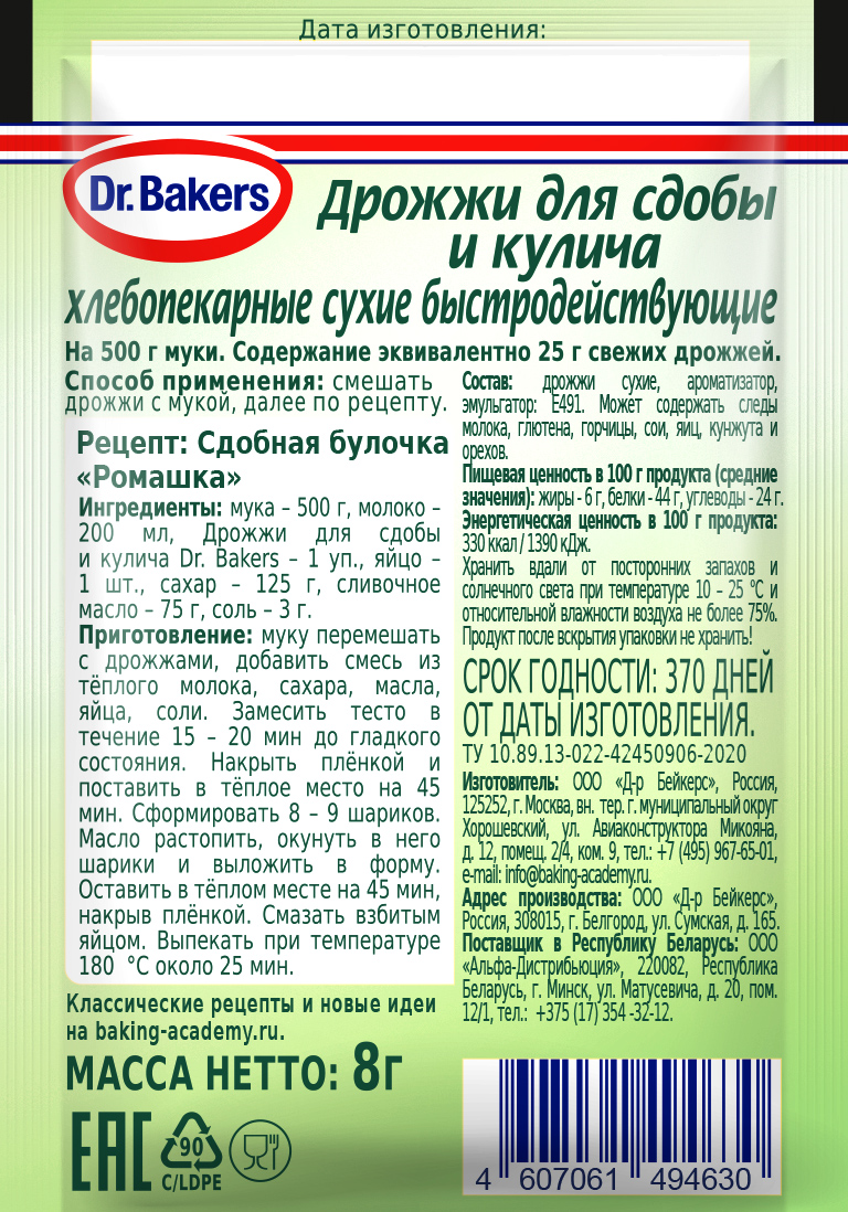 Дрожжи Dr.Bakers для сдобы и кулича, 8г