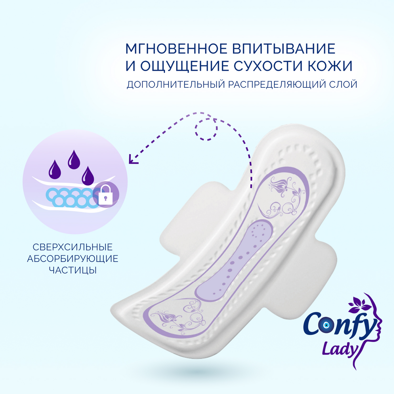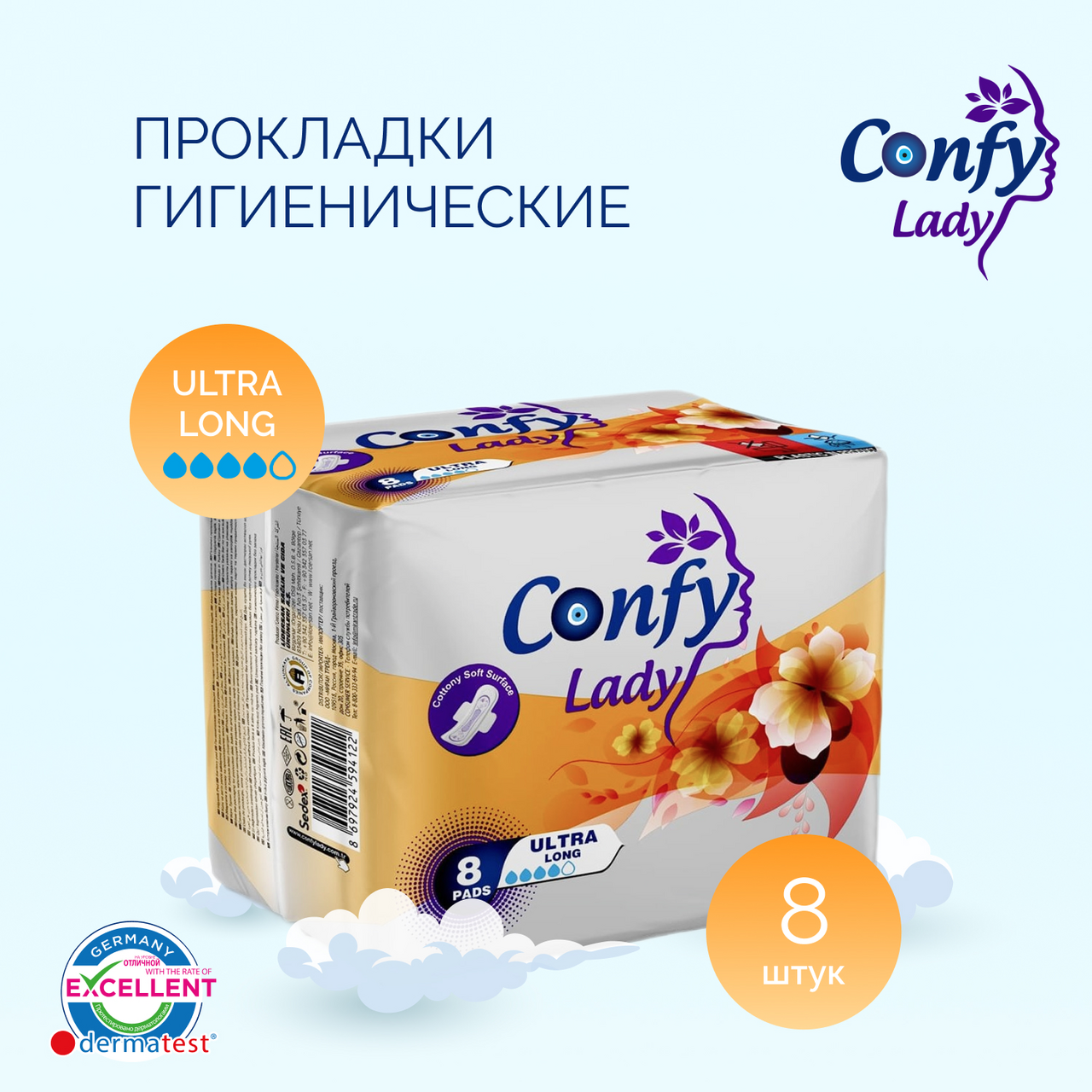 Женские гигиенические прокладки Confy Ultra Long созданы с использованием высоких технологий, тем самым гарантируя комфорт и защиту при носке. Мягкая хлопковая текстура прокладки не вызывает раздражений и обеспечивает комфортность использования. Специальная широкая конструкция боковых крылышек позволяет прокладке надежно крепиться к белью, позволяя не волноваться даже в самые активные моменты жизни. Сверхсильные абсорбирующие частицы задерживают жидкость и удерживают ее в течение долгого времени, тем самым защищая от протеканий.
