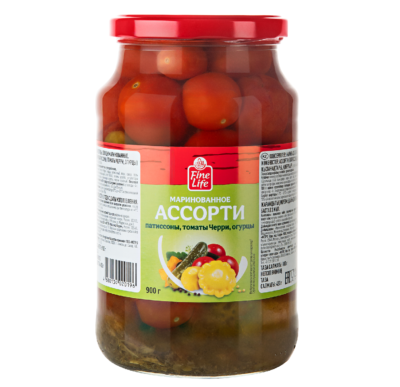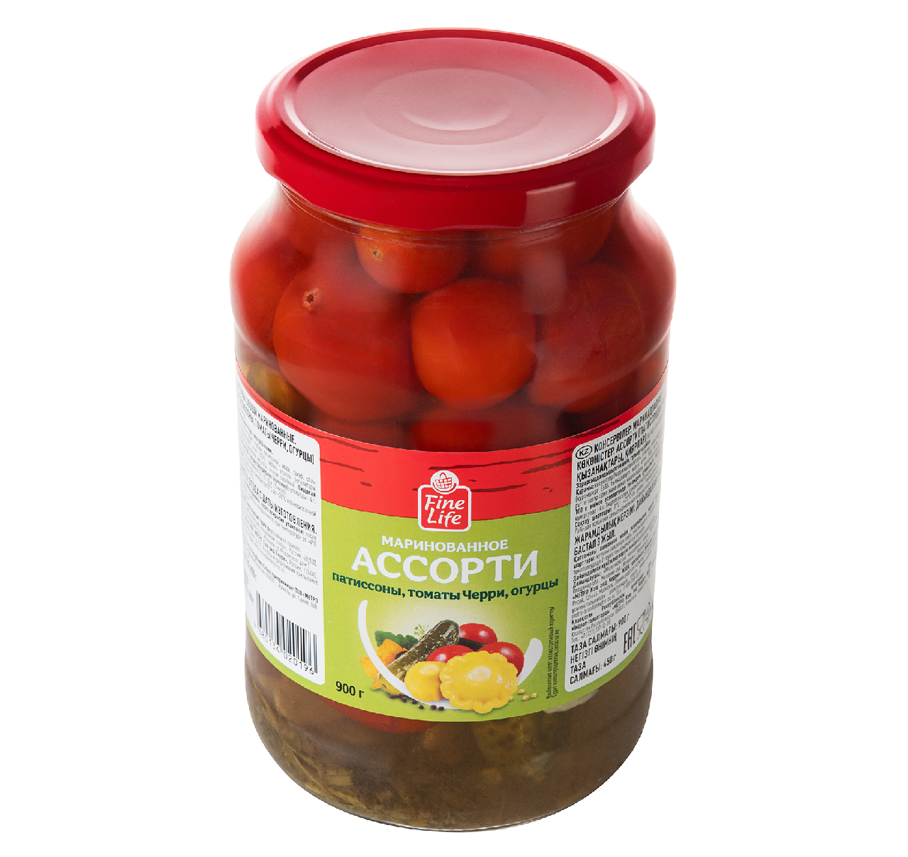 Fine Life Ассорти томаты черри с огурцами и патиссонами, 900г
