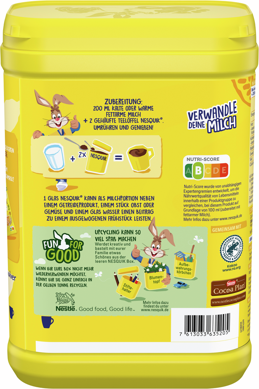 Nesquik делает молоко еще вкуснее и дополняет его пользу витаминами. Витамин D способствует усвоению кальция из молока, а также необходим для крепких и здоровых костей. А витамин С способствует нормальному функционированию иммунной системы, росту и развитию детского организма.