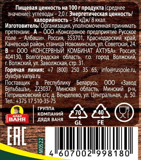 Огурцы Дядя Ваня Рязанские соленые, 950г