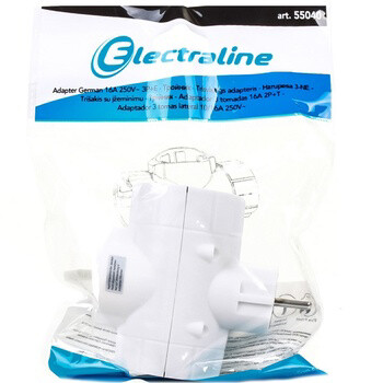 Адаптер Electraline T-образный, три гнезда, 16A, с землей, белый