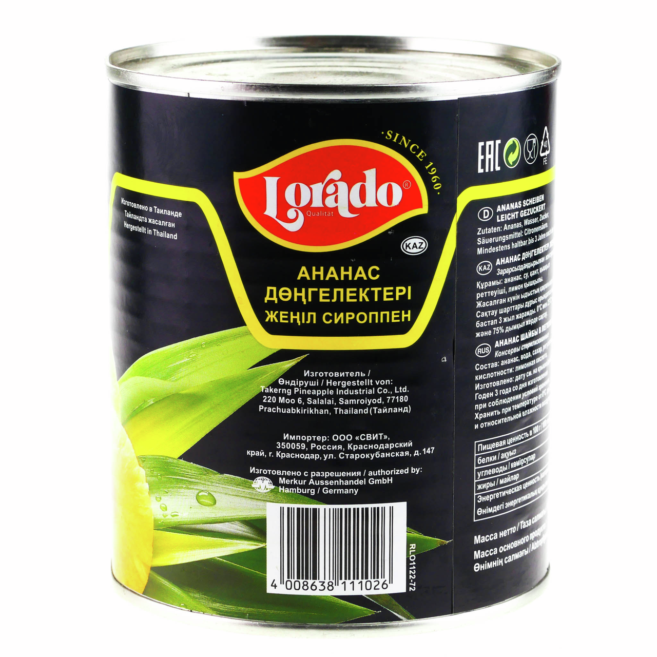 Ананас Lorado шайбы в легком сиропе, 820г - десертное блюдо с высоким содержанием сахара, изготовленное из мякоти спелых плодов ананаса. Его можно есть отдельно, использовать для приготовления различных блюд, салатов, кондитерских изделий и десертов. Употребление консервированных ананасов стимулирует работу пищеварительной системы, нормализует артериальное давление, разжижает кровь, предотвращает возникновение и развитие заболеваний сердечно-сосудистой и центральной нервной систем, органов дыхания.