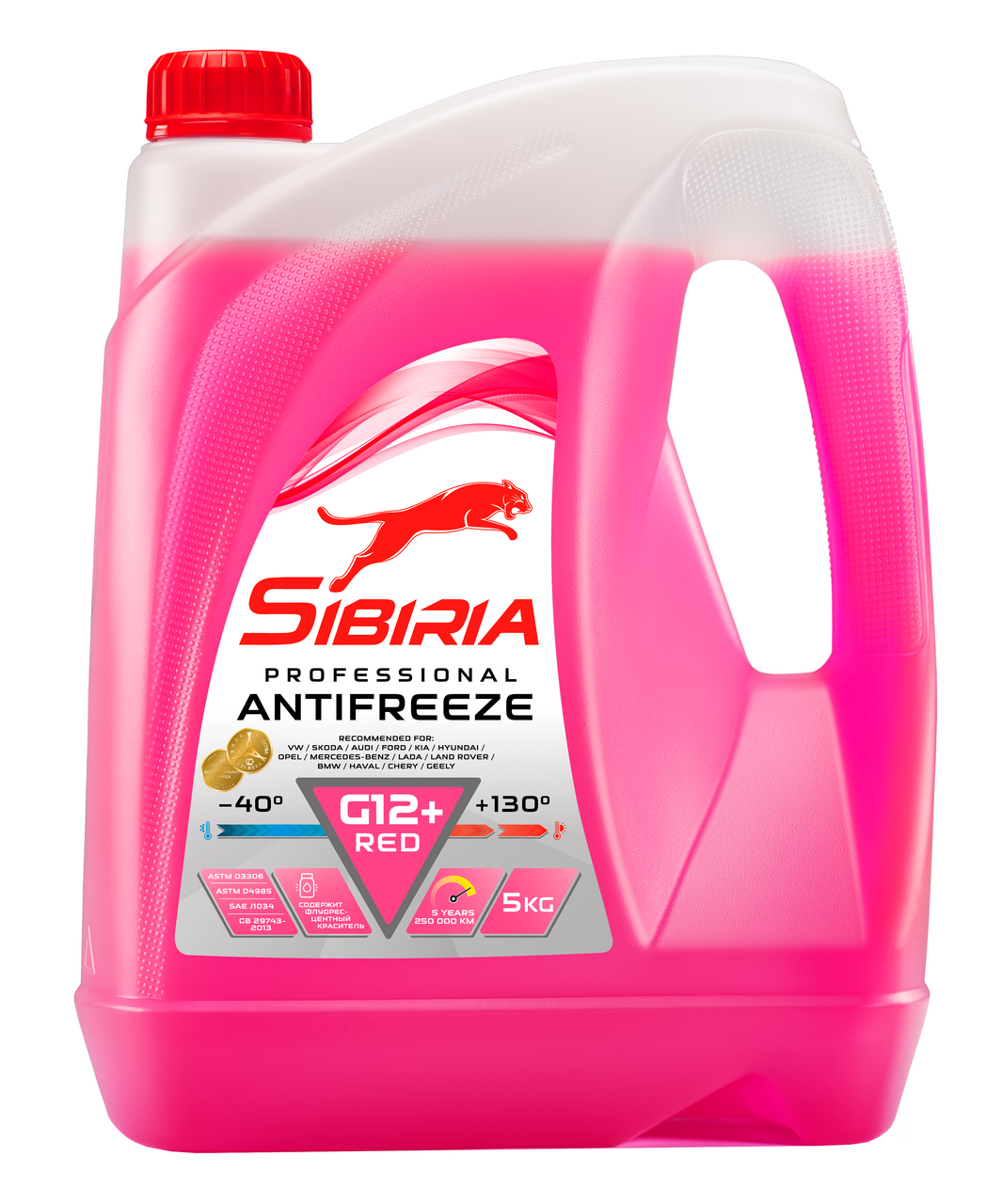 Карбоксилатный Антифриз Sibiria -40 G12+ изготовлен по новейшей технологии органических кислот (Organic Acid Technology) из этиленгликоля высшего сорта и импортного пакета функциональных присадок. Не содержит нитритов, нитратов, аминов, фосфатов, боратов и силикатов. Предназначен для всех современных двигателей, подвергающихся высокой нагрузке, особенно алюминиевых. Антифриз обеспечивает прекрасную защиту системы охлаждения от замерзания, коррозии и перегрева, эффективно защищает от образования отложений.