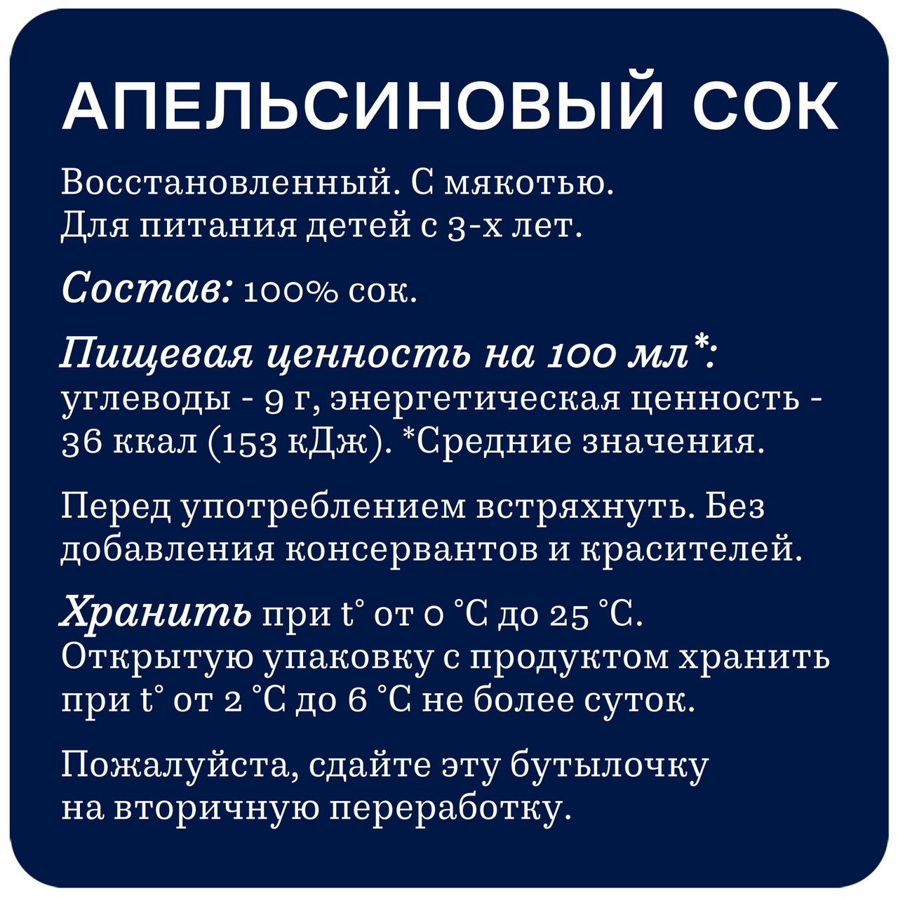 Апельсиновый сок. Восстановленный.