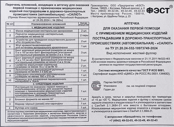 Аптечка для оказания первой помощи с применением медицинских изделий пострадавшим в ДТП. Для оказания само- и взаимопомощи людям, находящимся в автомобиле, микроавтобусе, автобусе.