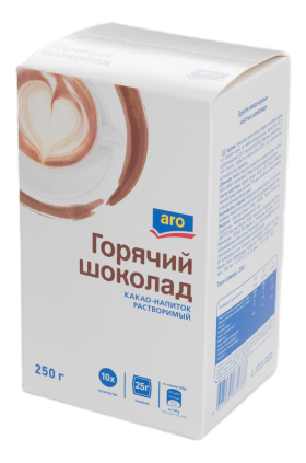 Горячий шоколад aro – это бодрящий напиток, который быстро согреет и придаст заряд прекрасного настроения. Для того чтобы приготовить горячий шоколад, нужно всего лишь высыпать содержимое упаковки в кружку и залить водой. Напиток обладает великолепным вкусом какао с яркими молочными нотками. Горящий шоколад имеет изысканный аромат ванили. У готового напитка приятная, в меру густая консистенция без комочков. Горячий шоколад отлично снимает стресс и помогает расслабиться после тяжелого трудового дня.