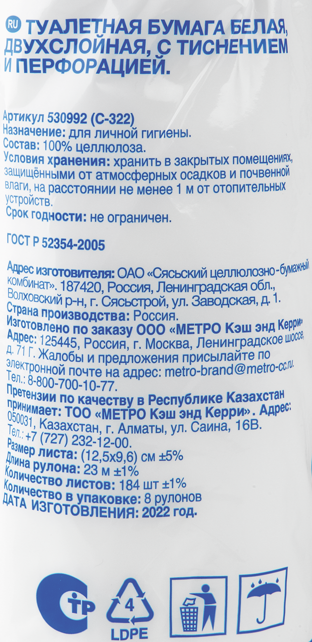 - Тип Туалетная бумага