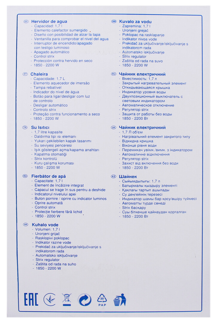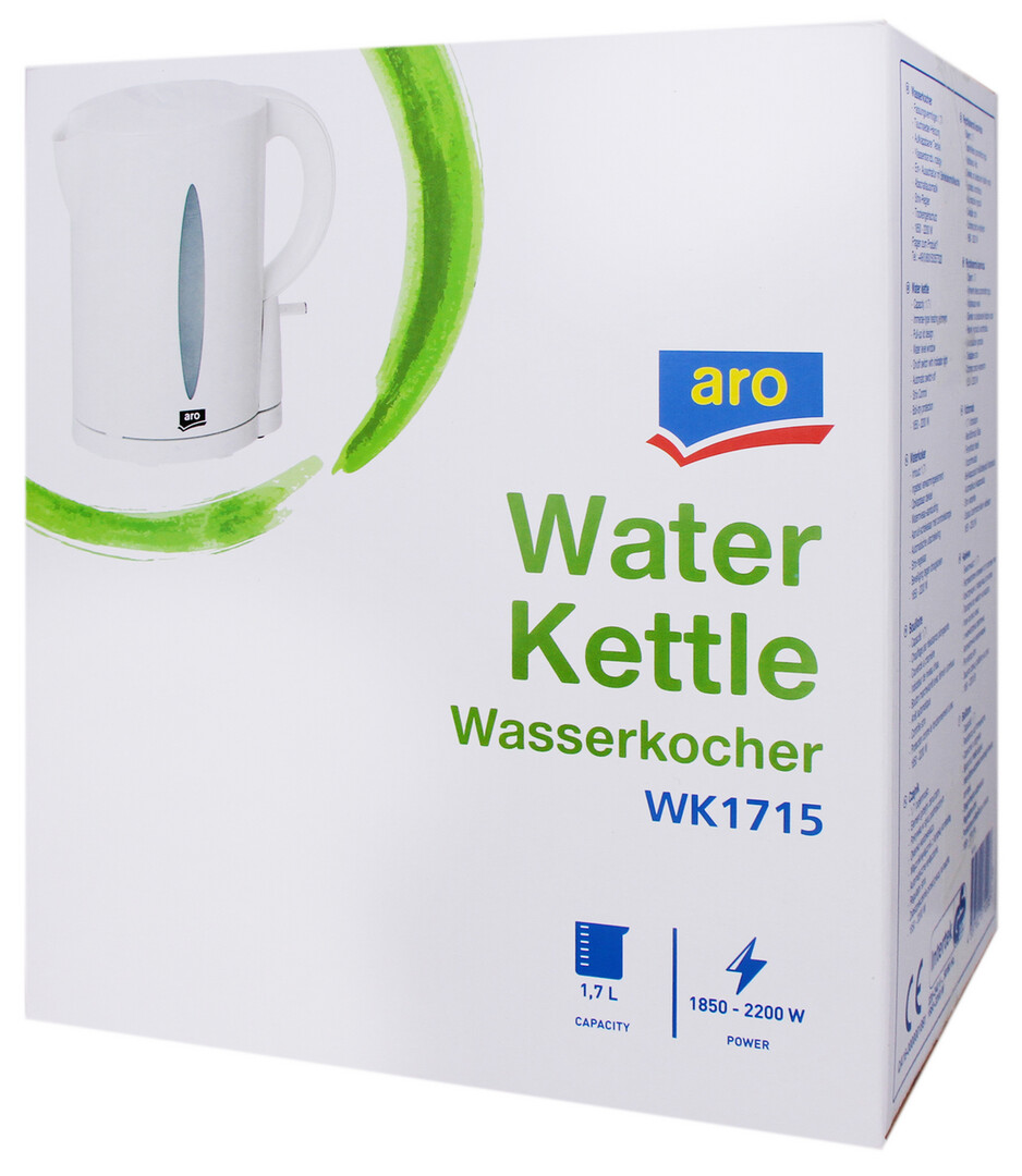 Электрочайник aro WK1715 на 1,7 л – это идеальное сочетание функциональности и стильного дизайна. Такой прибор станет незаменимым аксессуаром на вашей кухне, обеспечивая удобство и комфорт при приготовлении горячих напитков. Современный и лаконичный дизайн позволяет устройству легко вписаться в любой интерьер кухни. Его компактные размеры и небольшой вес делают чайник удобным для хранения. Корпус чайника выполнен из безопасного пластика, исключающего риск ожогов при закипании воды. Устройство работает бесшумно и быстро, даже при максимальном наполнении. Залив воды легко осуществляется при открывании крышки, а кипячение начинается после нажатия на кнопку под удобной ручкой. Прозрачное окошко на корпусе позволяет визуально оценить уровень заполненности резервуара. Стильный и функциональный прибор упростит повседневный ритуал приготовления чая. Он легкий и компактный, поэтому его удобно брать с собой в путешествия и различные поездки.