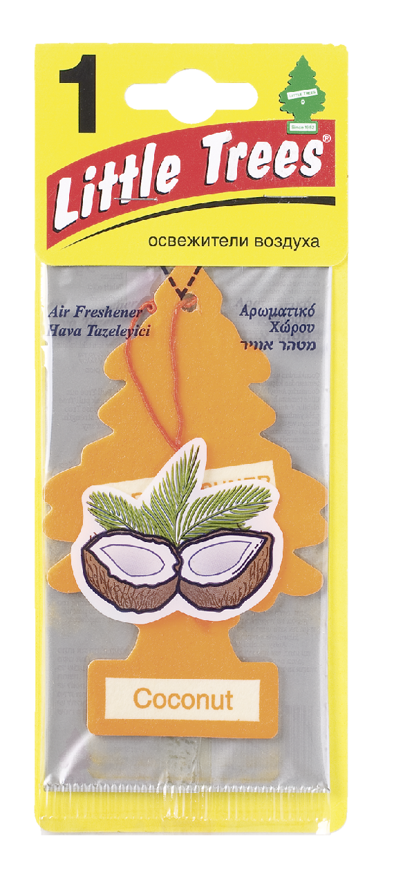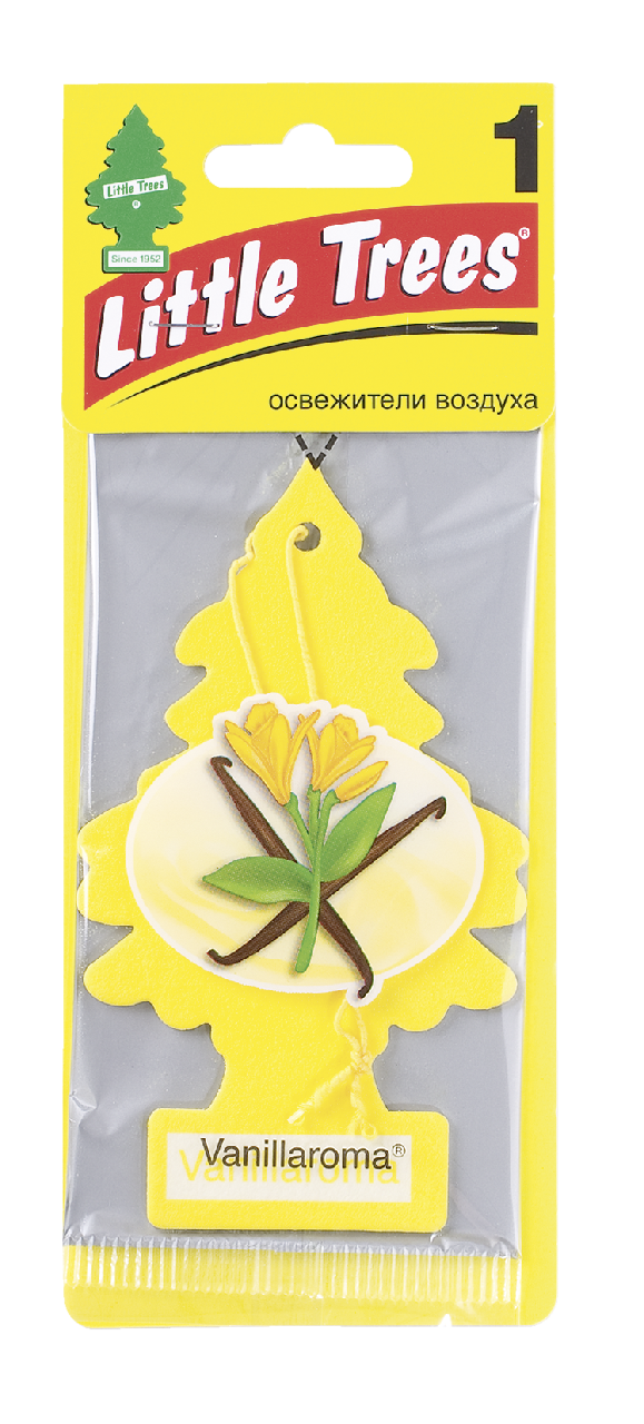 Ароматизатор Car Freshner Little Trees Vanillaroma в форме елочки обеспечит комфортную обстановку в салоне автомобиля, домашних и офисных условиях. Компактные размеры и нить-подвеска позволяют расположить его там, где необходимо. Ароматизатор изготовлен из экологичной спрессованной целлюлозы, пропитанной специальными безопасными составами. Он отдает аромат в течение 5-7 недель. Нежное благоухание ванили устранит последствия табачного дыма, запахи топлива, выхлопных газов, пластмассы, еды.