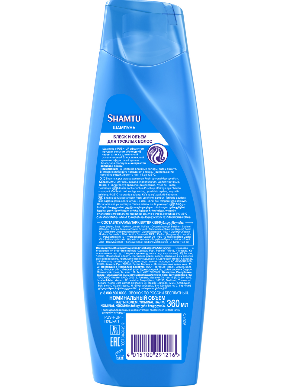 Шампунь Shamtu Блеск и объем для тусклых волос с экстрактом японской вишни объем с Push-up эффектом, 360мл