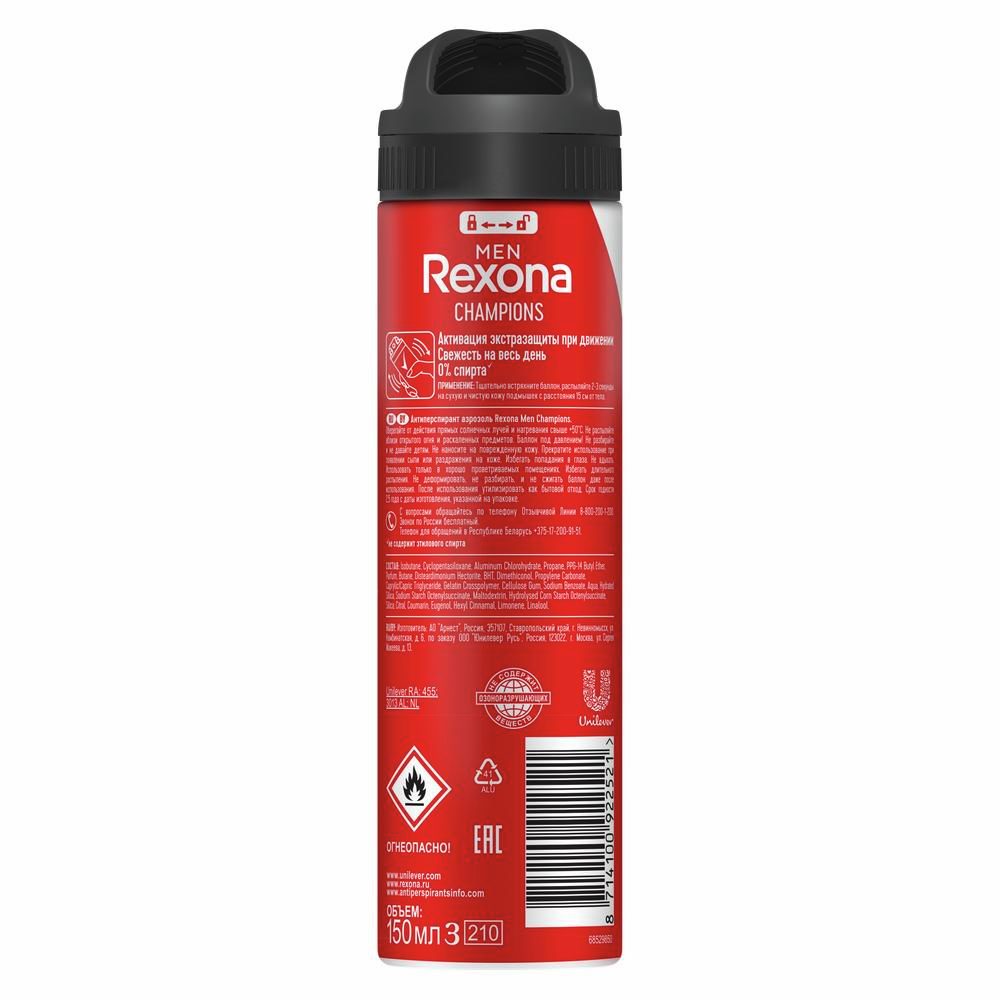 Рексона Men представляет новую линейку Champions, посвященную самому популярному виду спорта в мире – футболу. Уникальный* дизайн был разработан специально для тех фанатов, кто живет футболом, а не просто смотрит его! дезодорант - антиперспирант спрей Рексона Men Champions обеспечит современную защиту от пота и запаха, каким бы насыщенным ни был твой день. Он создан с использованием инновационной технологии Motionsense: микрокапсулы, распыленные на поверхность кожи, раскрываются во время движения под действием трения, непрерывно высвобождая дополнительный аромат. Пробуждающий, притягательный, спортивный аромат, наполненный свежестью цитруса, ананаса и мяты, с легкими нотами лаванды и герани, а также мужественным акцентом кедра и ветивера не оставит тебя равнодушным. Технология Motionsense реагирует на каждое твое движение, обеспечивая свежесть и защиту от неприятного запаха. дезодорант - антиперспирант Рексона Men Champions не подведет тебя и во время напряженного дня в офисе, и на встрече с друзьями, и в моменты волнения за любимую команду на стадионе. Покоряете ли вы новую вершину, спешите ли на автобус, выступаете ли с докладом или идете на свидание, будьте уверены, в�� надежно защищены от пота и запаха - что бы вы ни запланировали, у Рексона есть решение! Наши продукты работают так же эффективно, как и вы. Мы стремимся узнать о поте как можно больше, чтобы затем использовать полученные знания для создания инновационных формул наших продуктов. Рексона никогда не подведет! *в портфеле Unilever