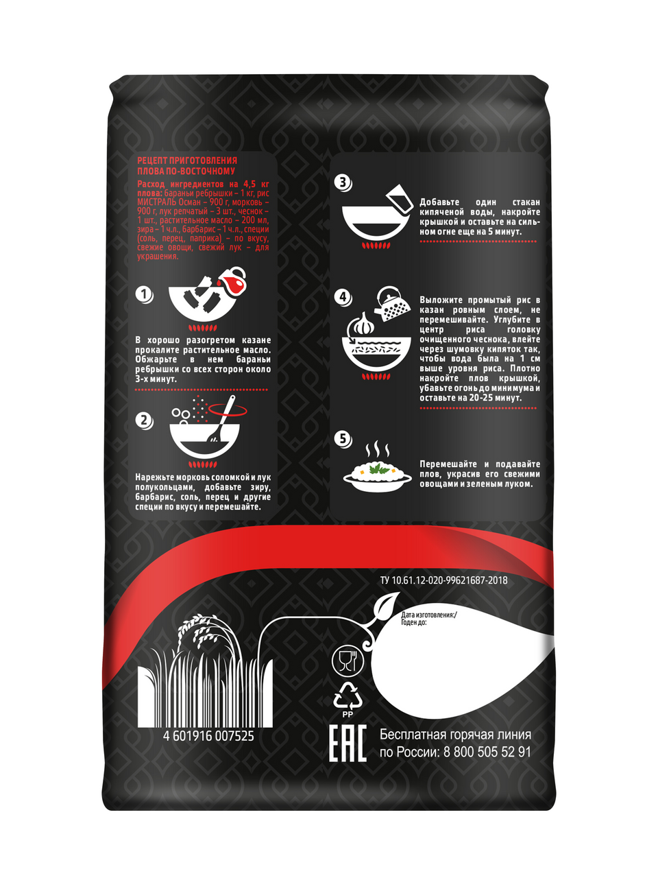 Рис Мистраль Осман для плова, 900 г — главный ингредиент блюд азиатской кухни. Он отличается крупным зерном, низким содержанием крахмала, поэтому готовый плов с ним получается всегда рассыпчатым и аппетитным. Рис сорта Осман обрабатывают растительным маслом, что придает зернам изысканный вкус. Его можно обжарить на сковороде, приготовить в казане или воке. При термической обработке зерна риса Осман сохраняют форму, а также увеличиваются в размере, впитывая вкус и аромат специй, мясных кусочков. Продукт полезен благодаря высокому содержанию клетчатки, витаминов и минералов, необходимых для поддержания иммунитета, правильной работы пищеварительной и сердечно-сосудистой системы.