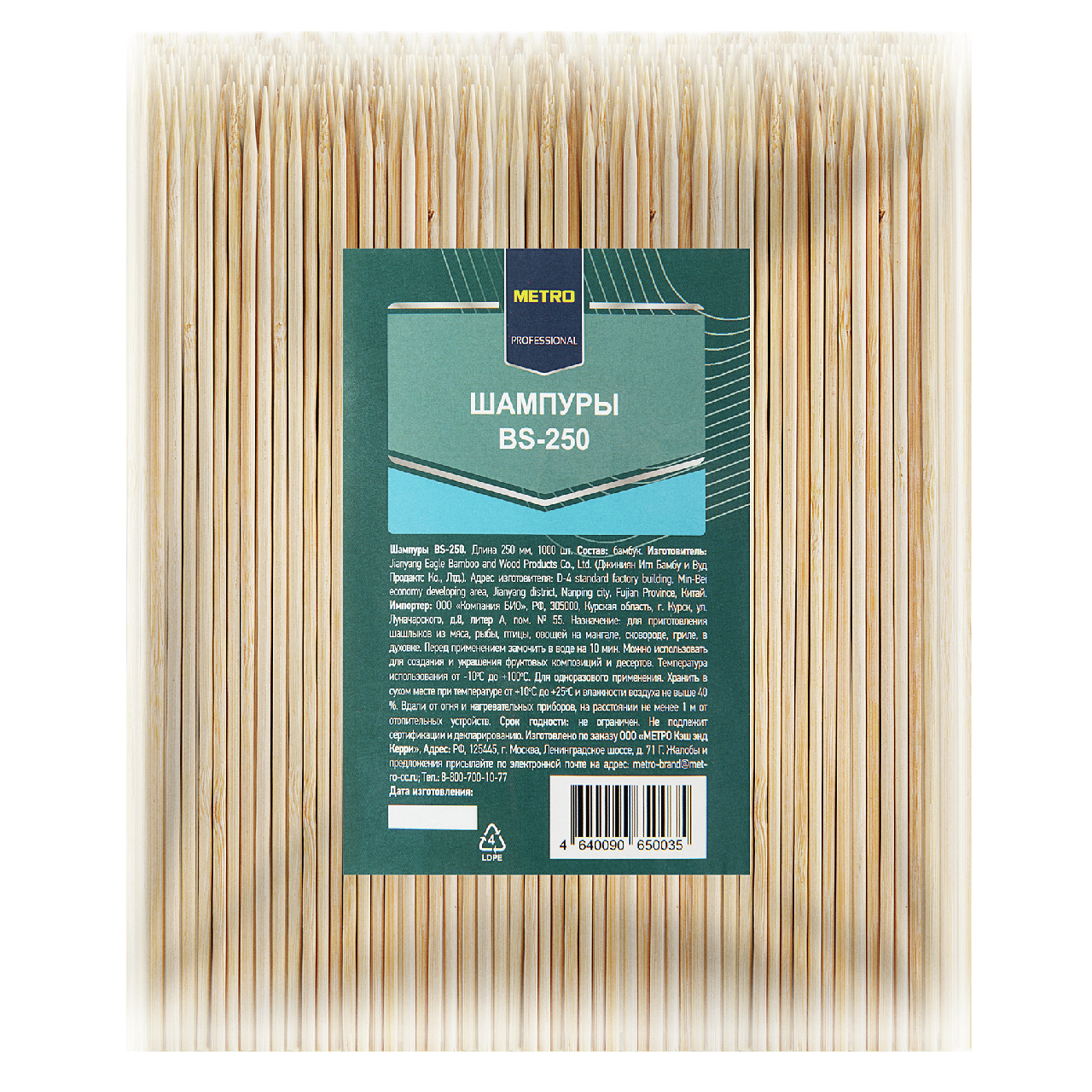 Шампуры деревянные METRO PROFESSIONAL — это элегантные изделия из бамбука, разработанные для создания изысканных закусок и канапе. В упаковке представлено 1000 штук этих шампуров, идеально подходящих для украшения и оформления блюд на различных мероприятиях. Изготовленные из экологически чистого материала — бамбука, они являются биоразлагаемыми и отлично сочетают в себе эстетику и функциональность. Шампуры идеальный выбор для различных мероприятий, где важна не только презентация блюд, но и забота о природе. Длина в 25 см позволяет с удобством оформлять закуски и канапе, придавая вашему столу роскошный вид. Создайте уникальные и стильные композиции с помощью шампуров, добавляя изысканности блюдам на мероприятиях любого масштаба.