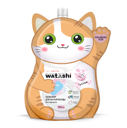 Бальзам для мытья посуды Watashi Kote без перчаток микс, 700мл представляет собой эффективное средство, которое мгновенно расщепляет жир и гарантирует идеальную чистоту посуды, при этом не провоцируя сухость кожи рук. В состав входит концентрированная формула, которая помогает справляться с разного рода загрязнениями даже в холодной воде. Гиалуроновая кислота и глицерин смягчают и питают кожу рук. Бальзам идеально подходит для мытья фруктов, овощей и детских игрушек. Он полностью смывается с любых предметов. Отдушка с приятным, сладким ароматом никого не оставит равнодушным. Продукция выпускается в небольшом пакете с эффектным дизайном, привлекающим взгляд. За счет компактного формата продукцию легко хранить, транспортировать и использ��вать. Watashi – это известная торговая марка, основным направлением которой является производство различных товаров для малышей. Отличительной особенностью является объединение японской технологии и собственной AQUA STOP для быстрого распределения и впитывания влаги. Упаковки выпускаемой продукции выглядят оригинальной. На них изображены яркие и веселые зверята. К основным преимуществам бренда относятся: соблюдение стандартов качества, премиальных материалов и современного оборудования.