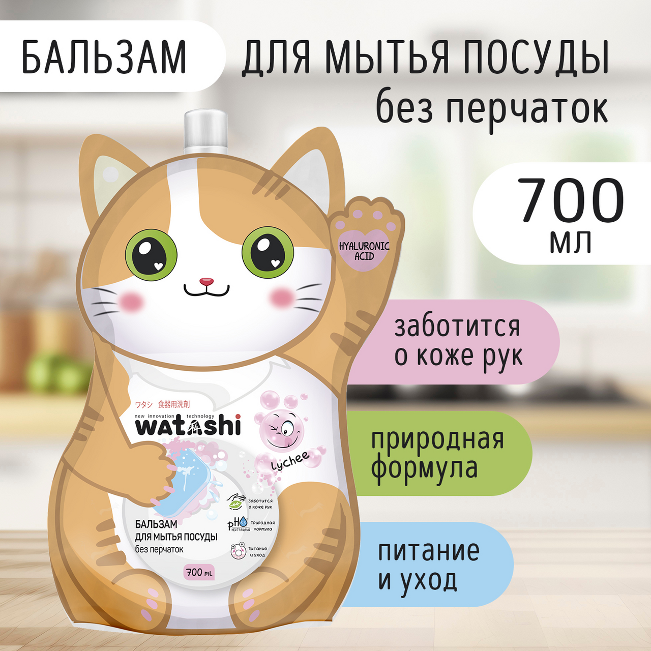 Бальзам для мытья посуды Watashi Kote без перчаток микс, 700мл