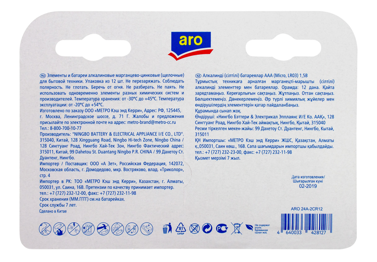 aro Батарейки LR03 AAA, 12шт
