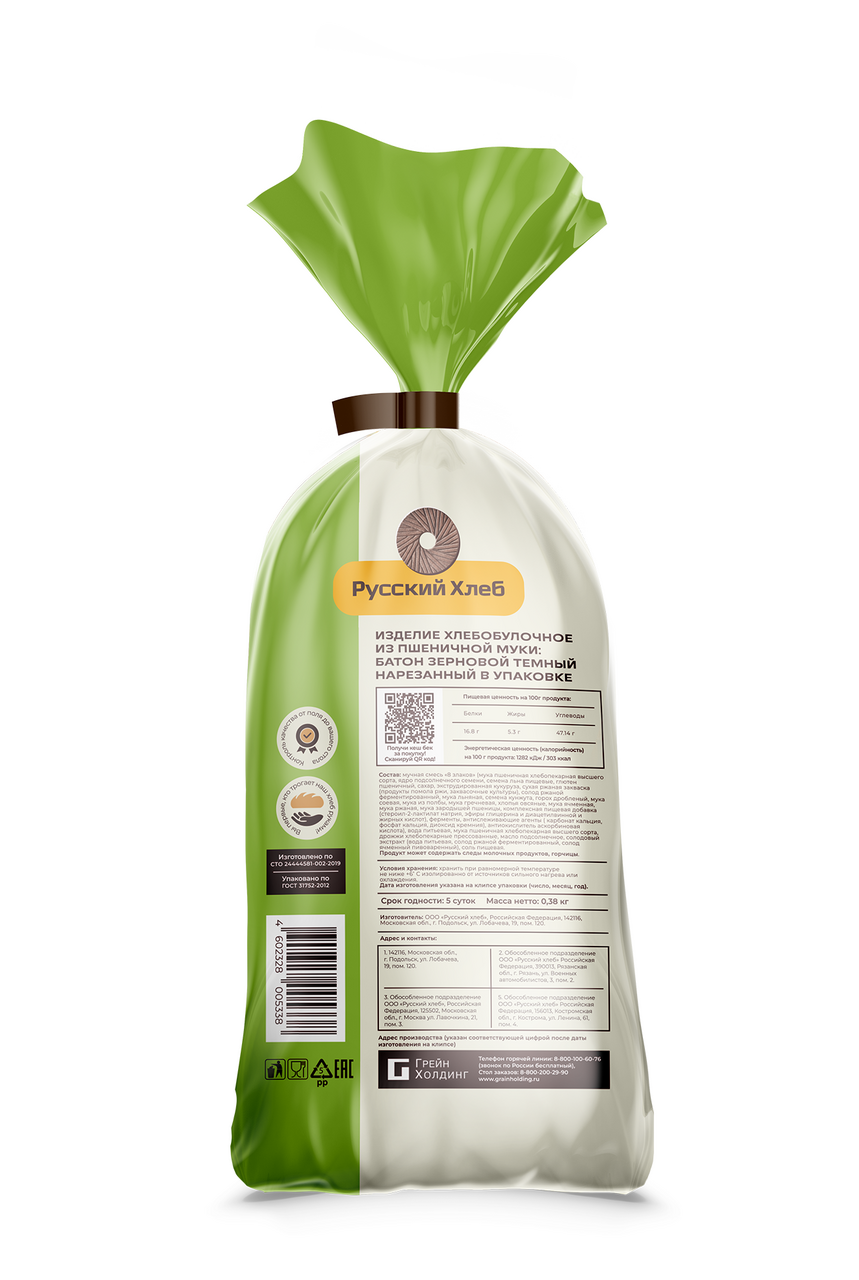Батон Русский хлеб зерновой темный в нарезке, 380г