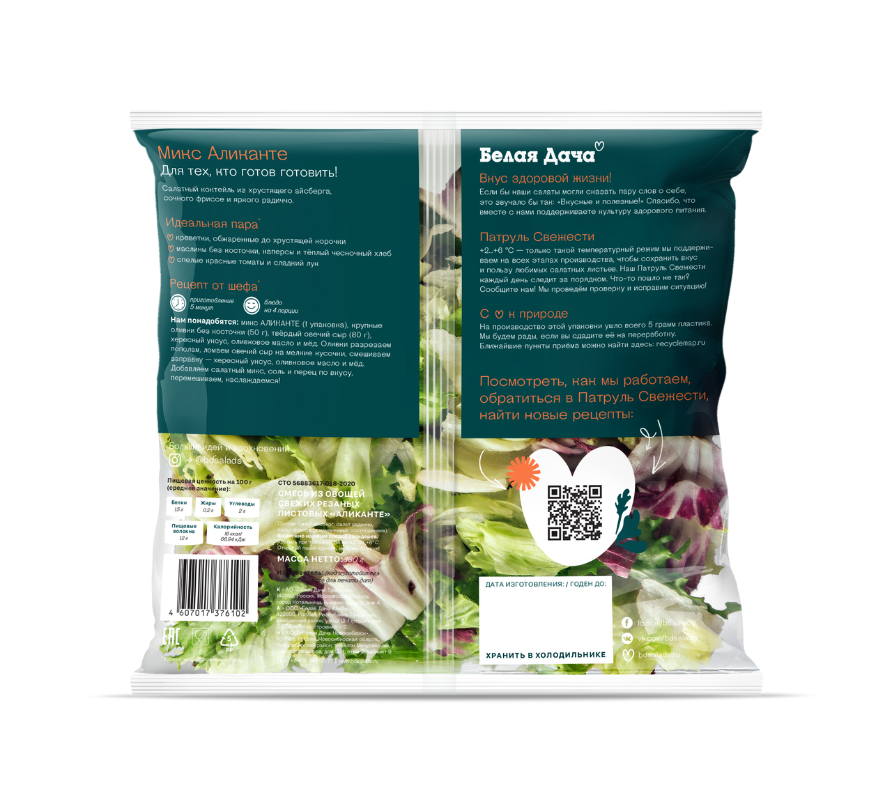Салатный микс Аликанте Белая Дача - для тех, кто готов готовить! 100% готов к столу: вымыт, просушен, нарезан. Салатный коктейль из хрустящего айсберга, сочного фриссе и яркого радиччо.