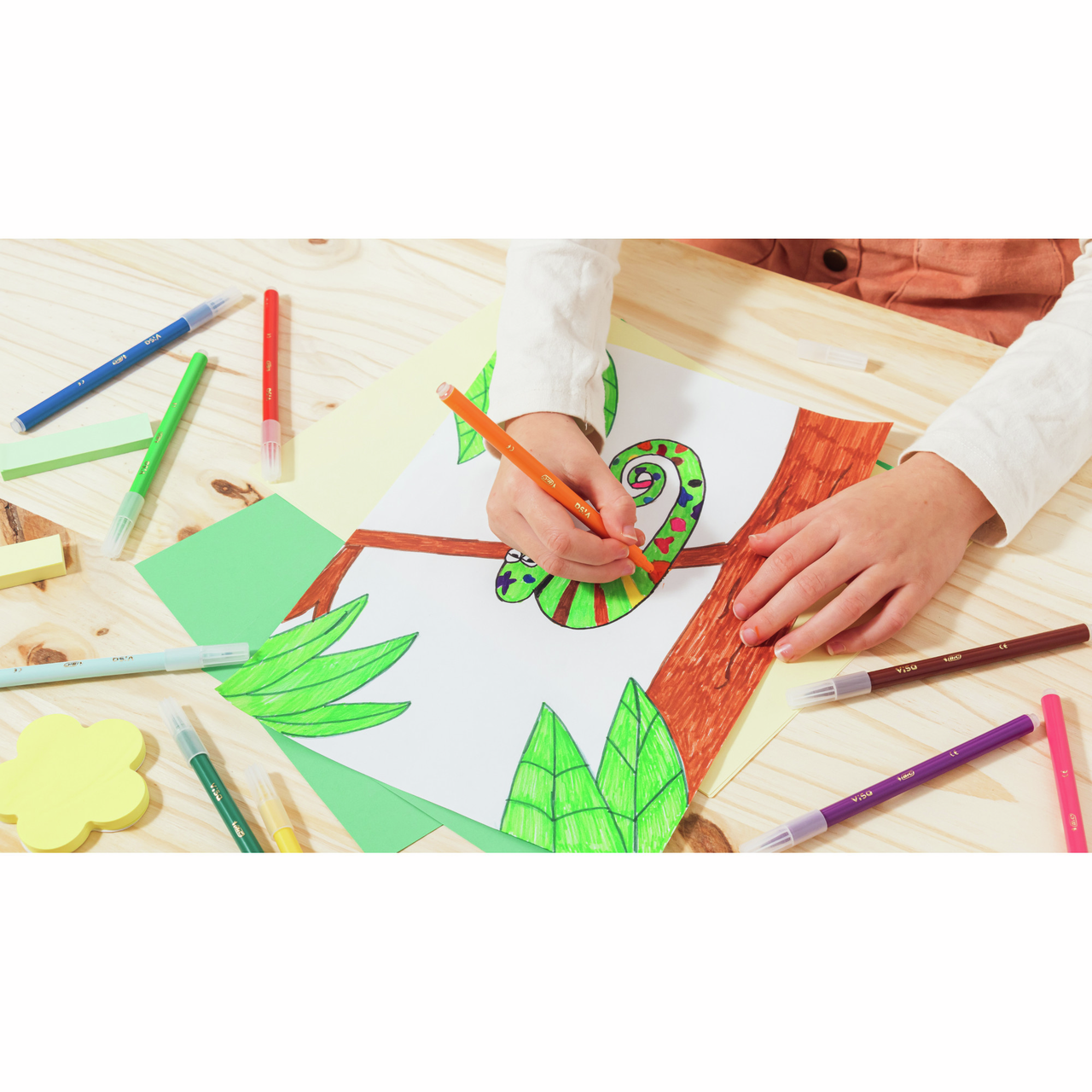 Линейка продуктов BIC Kids представлена принадлежностями для рисования, разработанными специально для детей. С ними легко расти и развиваться, проявляя свои творческие способности. С фломастерами BIC Kids Visa одинаково легко рисовать чёткие линии толщиной 0.8 мм и сложные разноцветные узоры. Не переживайте, если малыши нарисуют что-то на одежде! Чернила на водной основе смываются с большинства тканей. В этих фломастерах, за исключением чёрного, специальные чернила, которые не высыхают до 3 месяцев, даже если забыть надеть колпачок. Вентилируемый колпачок с лёгкостью снимается и надевается. Знак качества: эти детские фломастеры производятся на собственных заводах BIC на основании проверенной временем экспертизы компании. Яркий корпус, колпачок и пишущий узел совпадают по цвету. Рисуйте весело вместе с BIC.