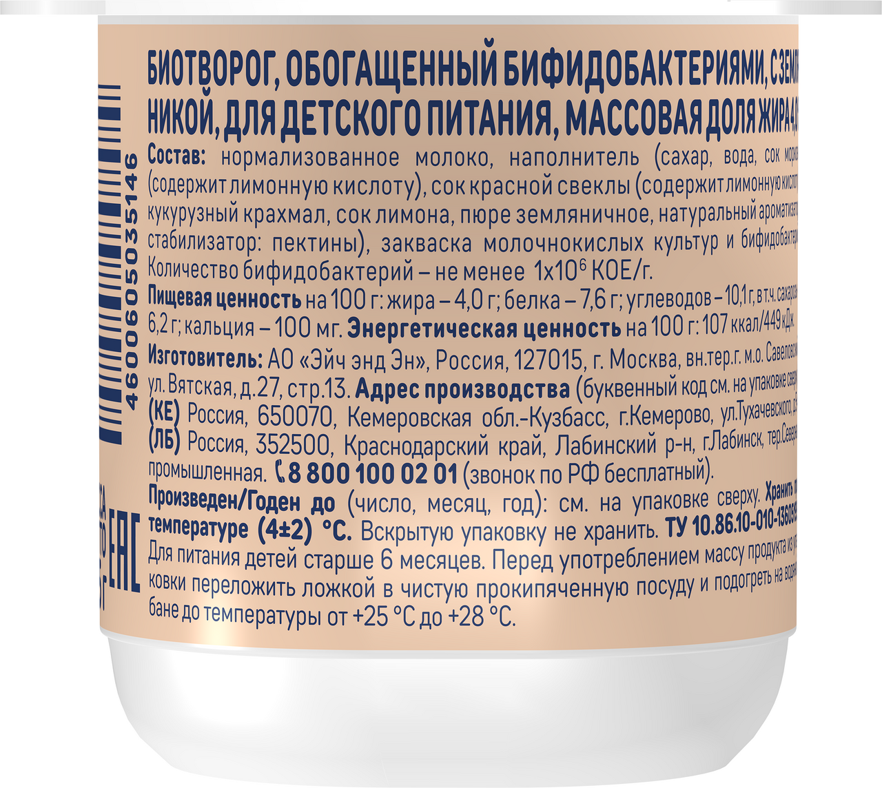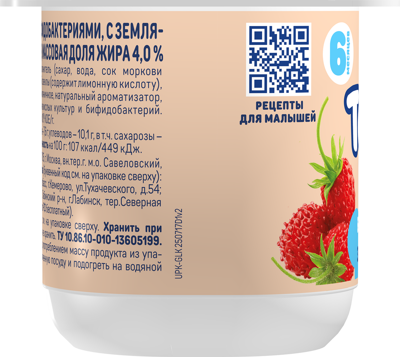 Встречайте новинку - детский биотворог Тёма Земляника. Наш биотворог создан с любовью и вниманием к потребностям самых маленьких (с шести месяцев). Сочетание нежной текстуры творога и яркого вкуса спелой земляники точно понравится вашему малышу.Пробиотики для комфортного пищеварения. 100% натуральный состав. Нежная текстура.
