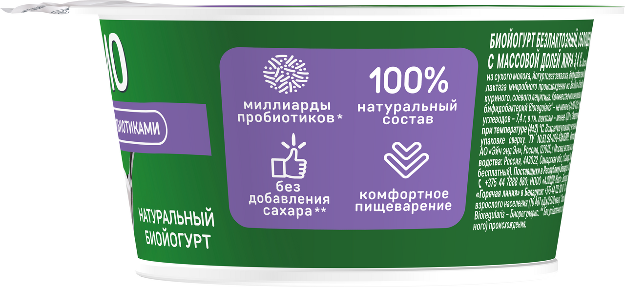 Попробуй новый вкусный биойогурт от АктиБио без лактозы. Нежный и вкусный кисломолочный напиток. Благодаря бифидобактериям способствует комфортному пищеварению. В меру сладкий с насыщенным сливочным вкусом прекрасно подходит как для завтрака, так и для легкого перекуса в течение дня. Его добавляют в творог, коктейли, заправляют им салаты.