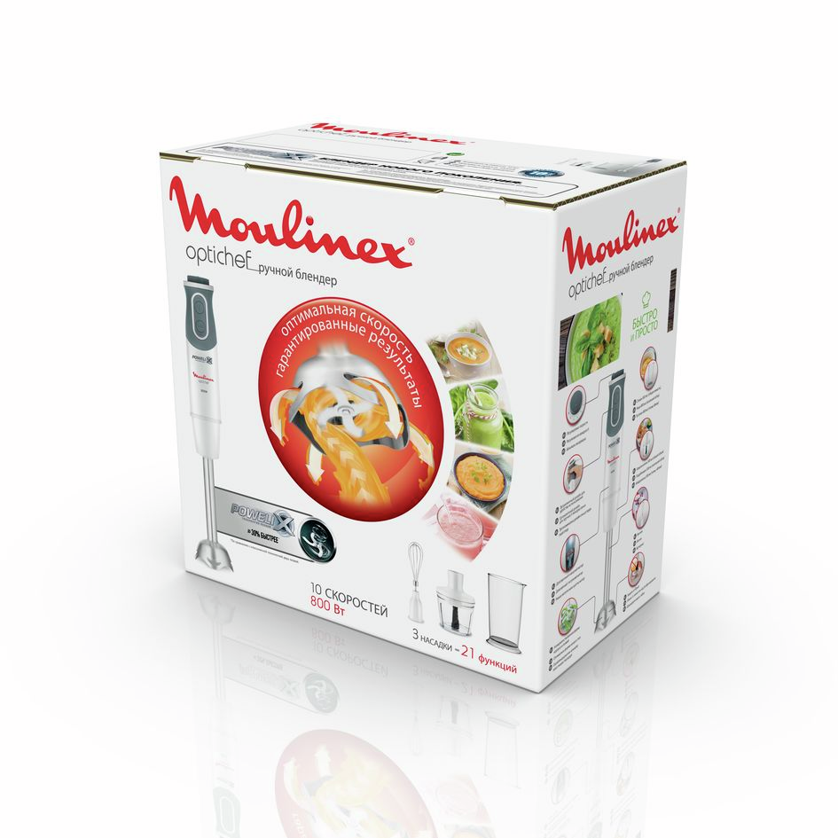 Насладитесь оптимальным процессом и идеальным результатом с погружным блендером от Moulinex. Специальный дизайн насадки и форма лезвий обеспечат невероятно легкую работу с прибором, в то время как практичная защита от брызг сделает процесс приготовления более комфортным. Полностью контролируйте процесс приготовления с помощью высококачественного мотора мощностью 800 Вт и 20 скоростных режимов, которые можно переключать, не прерывая легкое и интуитивно понятное управление прибором. Также блендер оснащен нескользящей ручкой и съемными частями, которые можно мыть в посудомоечное машине. В дополнение к блендеру идут мерный стаканчик объемом 800 мл и измельчитель объемом 500 мл для легкой и удобной нарезки различных ингредиентов и венчик для взбивания. Незаменимый помощник для каждой домохозяйки. Погружной агрегат имеет 10 скоростей и специальный турбо-режим. Прочная металлическая нога, измельчитель 500мл и подсветка скоростей делает эксплуатацию устройства удобной и безопасной. Погружной блендер оснащен эргономичной ручкой с покрытием Soft Touch, в комплекте мерный стакан 800мл.