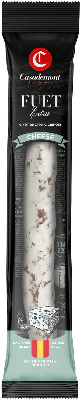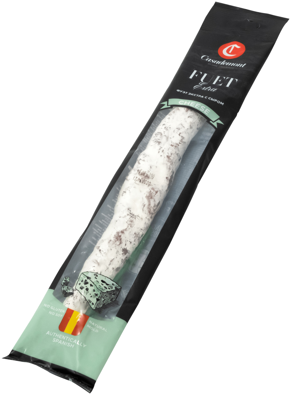 Колбаса Casademont Fuet Extra сыровяленая с сыром, 110 г – прекрасная колбаса из нежирной свинины, имеющая мраморный срез, благородный вкус и неповторимый аромат. Она отлично подходит как для будничного, так и для праздничного стола. Это не только отличное самостоятельное угощение, но и основной ингредиент для разнообразных бутербродов. Часто сыровяленая колбаса используется при приготовлении пиццы, запеканок и салатов, в результате чего питательная ценность готовых блюд увеличивается.