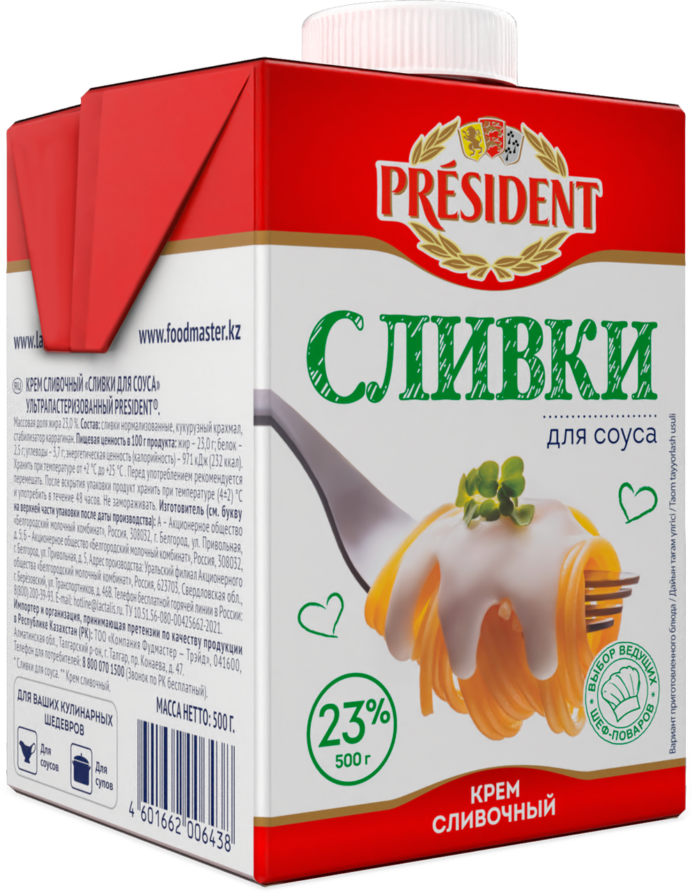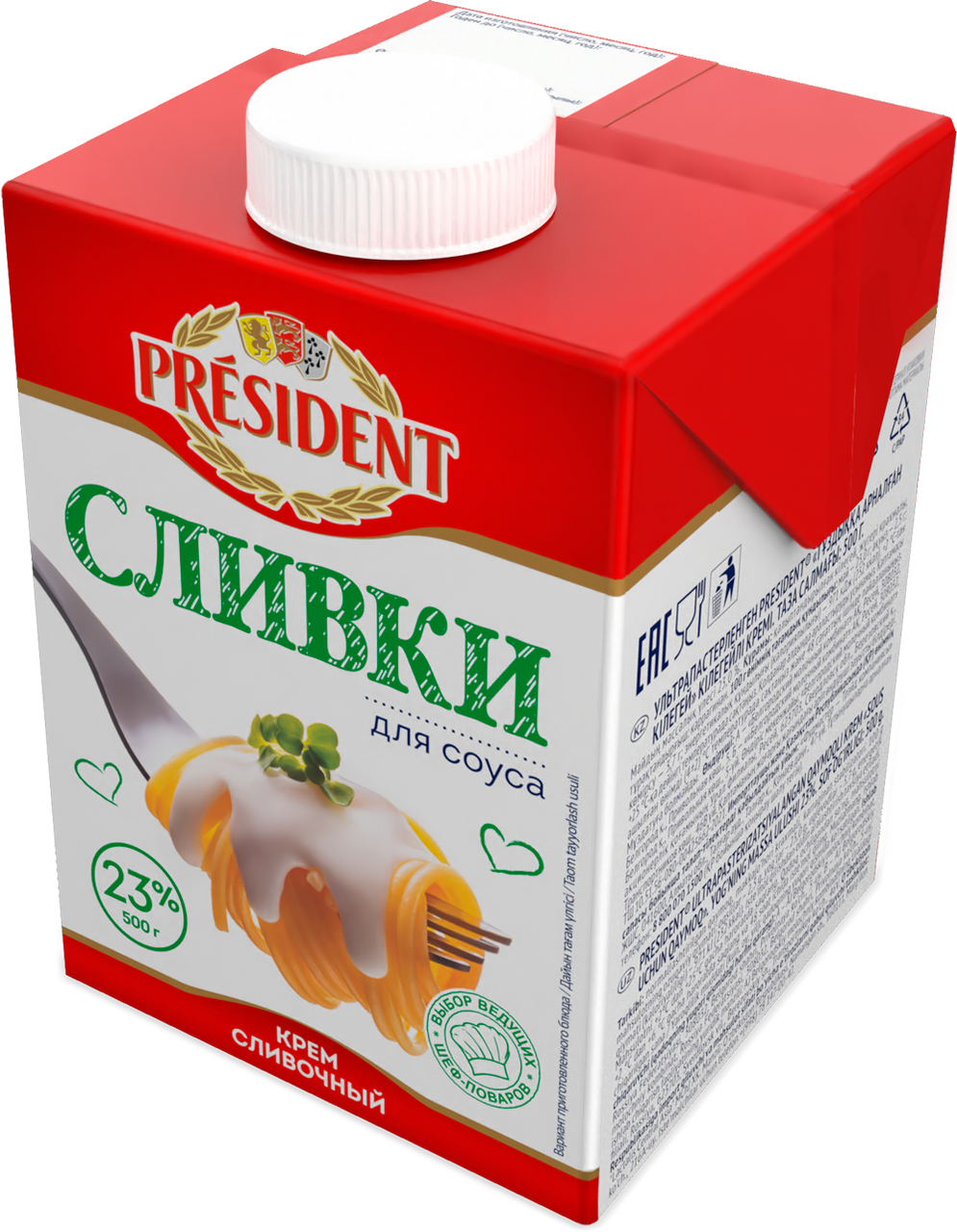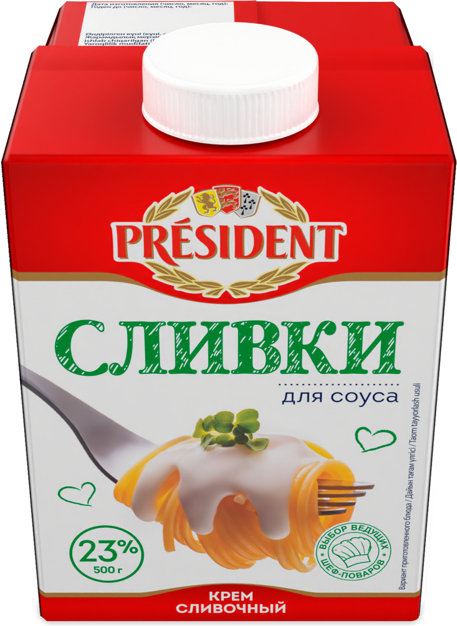 Сливки President для соуса ультрапастеризованные 23%, 500г