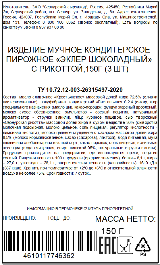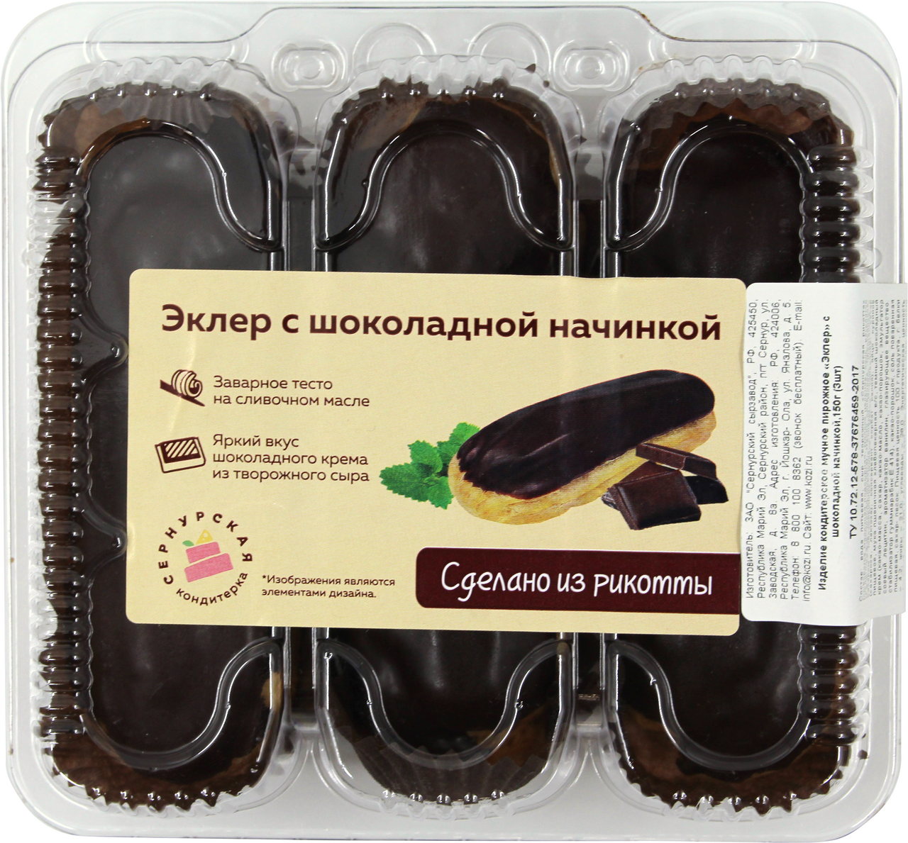 Эклеры Сернурская кондитерка шоколадные с рикоттой, 150г