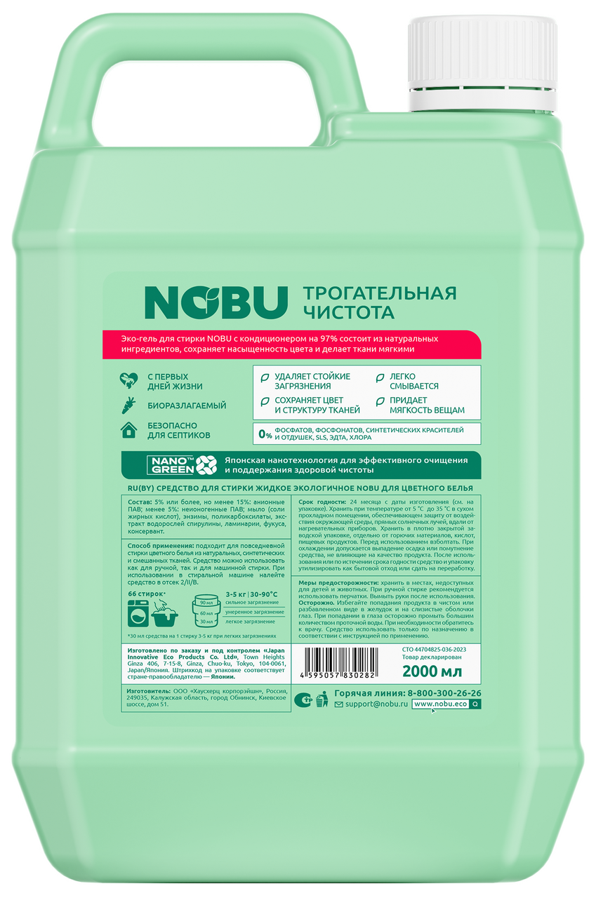 Эко-гель для стирки Nobu Color с кондиционером, 2л