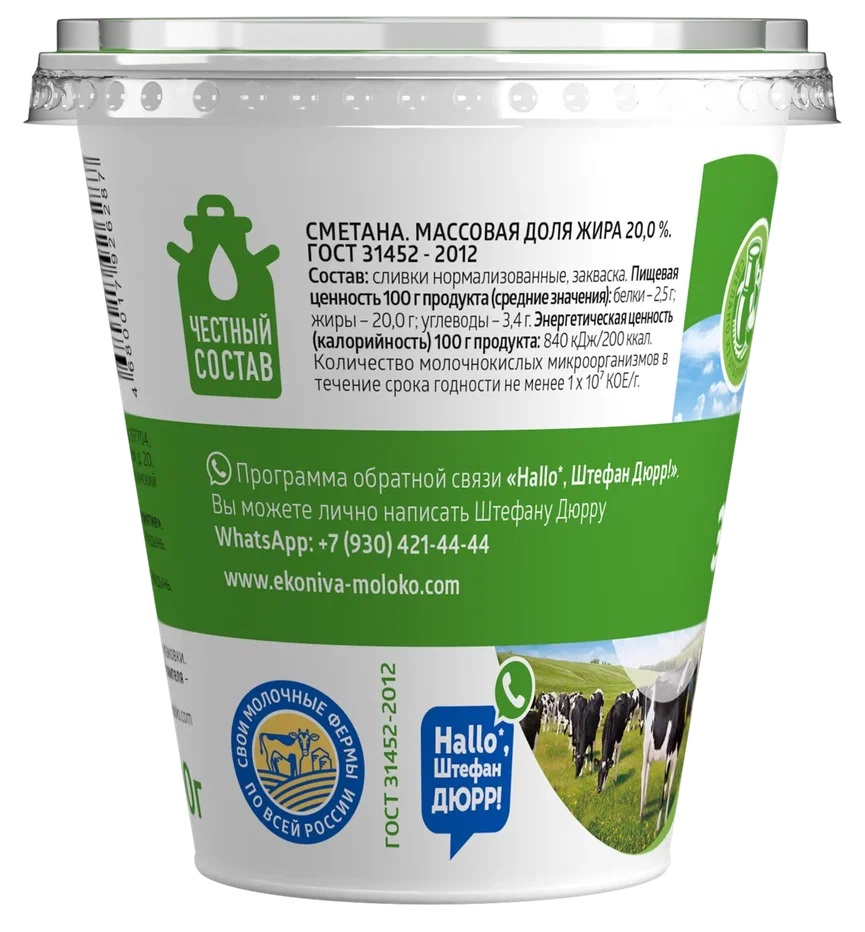 Сметана ЭкоНива 20 % — традиционный продукт, созданный на основе натуральных сливок с добавлением живой закваски. Наш организм способен усваивать сметану легко и быстро за счёт высокого содержания кисломолочных бактерий: это универсальный продукт для людей всех возрастов.Сметана ЭкоНива отлично сочетается с творогом, зеленью и картофелем; удачно подходит для создания десертов и выпечки, поскольку легко взбивается; оттеняет вкус свежих и сушёных фруктов, мёда, варенья. Тушёные в сметане: мясо, птица, рыба и грибы — приобретают нежный сливочный вкус.