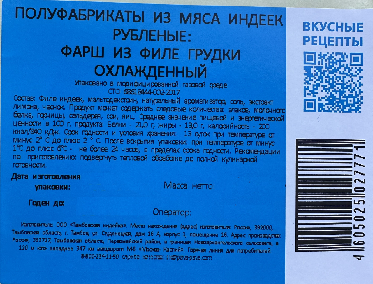 • Тип Фарш из индейки