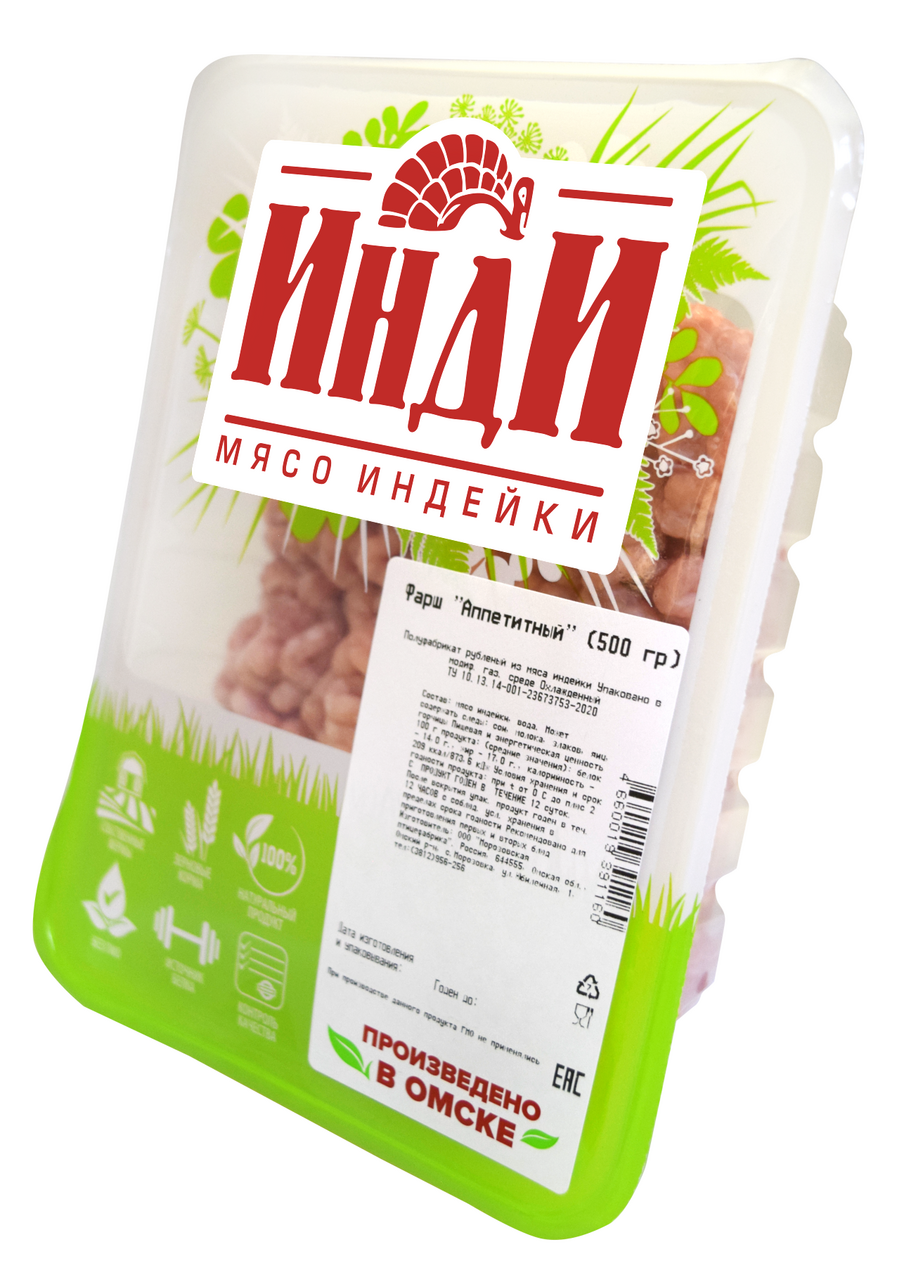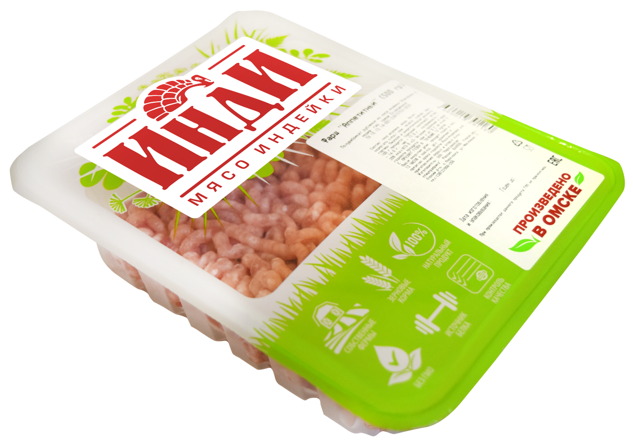 Фарш из индейки - универсальный диетический продукт. Приготовление различных блюд сэкономит время хозяйки на кухне, поможет быстро и вкусно порадовать семью вкусными блюдами. Упаковка 500 грамм максимально удобна в использовании. Нежирное мясо индейки, богатое белком и полезными микроэлементами, оптимально подходит для диетического питания. Полуфабрикат подходит для приготовления любых блюд: котлет, тефтелей, фрикаделек, запеканок и других. Готовые блюда из индейки хорошо сочетаются с любыми гарнирами и разнообразными соусами. Ароматный полуфабрикат из отборной индюшатины. Его можно использовать для приготовления всевозможных котлет, фрикаделек, мясных шариков и голубцов. Вкусный и полезный продукт подходит для детского питания.