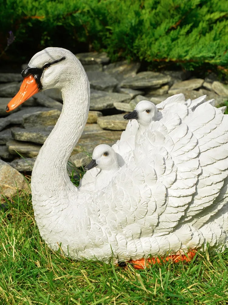 Фигурка садовая Decobraz Лебедь с детьми, 25 x 40 x 18см