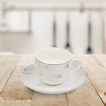 Чайная пара Fioretta Springtime 230 мл — это продукция высокого качества, изготовленная из прочных, надежных, долговечных и безопасных для здоровья материалов. Посуда порадует хозяев и их гостей своим элегантным исполнением в классическом стиле. Перламутровые элементы на поверхности удачно сочетаются с золотыми линиями, которые выглядят очень утонченно и изысканно. Такие изделия способны гармонично дополнить сервировку повседневного и праздничного стола, а также подойдут в качестве подарка. Качественный фарфор отличается высокой степенью белизны, а благодаря специальному покрытию посуду можно использовать долгое время, и она не утратит своего первоначального внешнего вида, на ней не образуется потемнений, сколов и стираний рисунка.