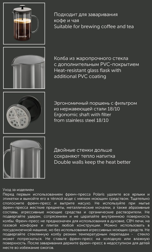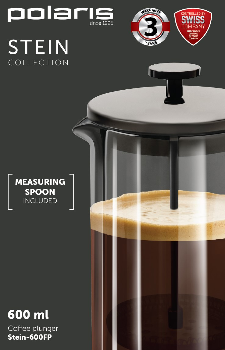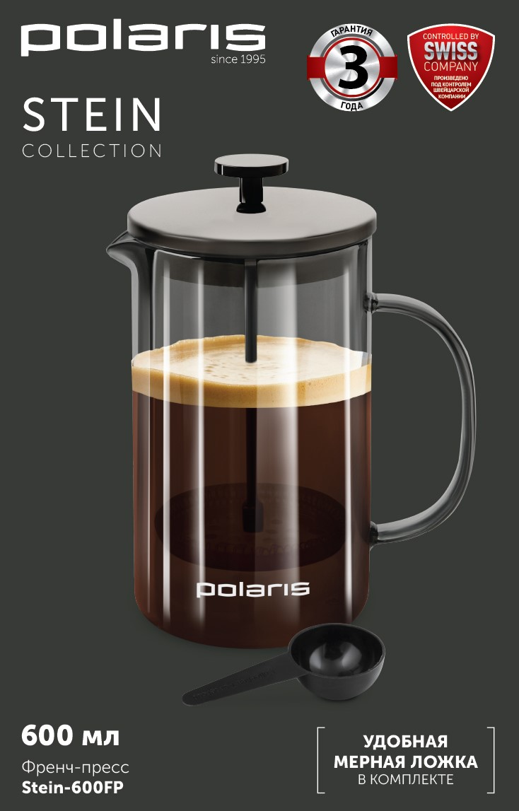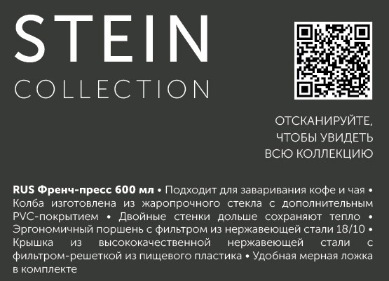 Френч-пресс 600мл. Подходит для заваривания кофе и чая.Колба изготовлена из жаропрочного стекла с дополнительным PVC-покрытием.Двойные стенки дольше сохраняют тепло. Эргономичный поршень с фильтром из нержавеющей стали 18/10.Крышка из высококачественной нержавеющей стали, фильтр-решетка из пищевого пластика.