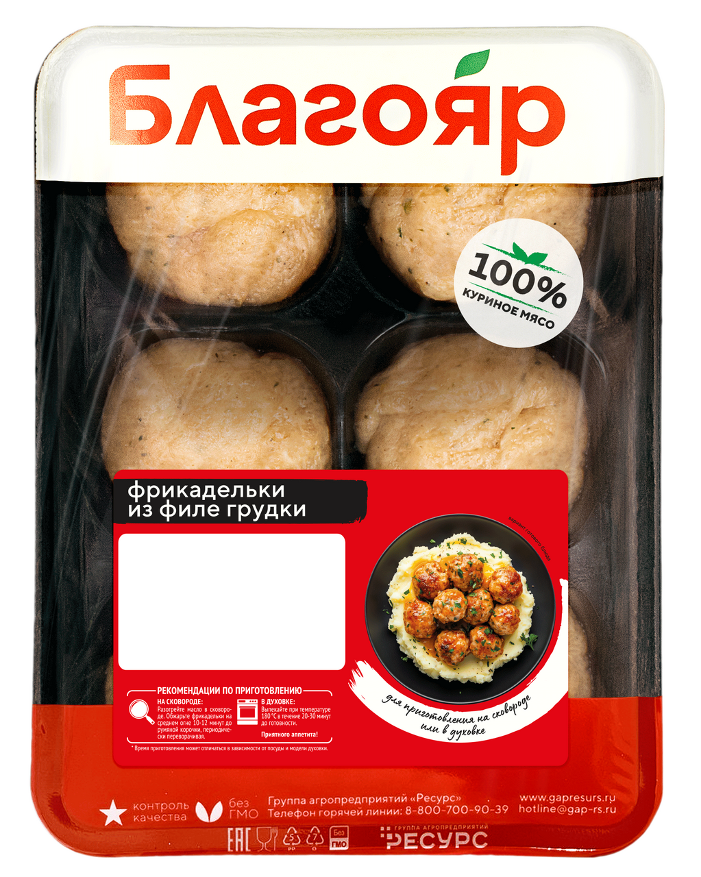 Фрикадельки из филе грудки цыпленка-бройлера Благояр охлажденные, 360г