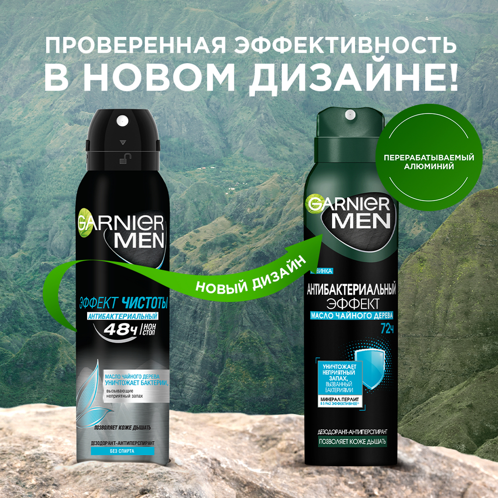 Дезодорант-антиперспирант-спрей Garnier Men Антибактериальный эффект, 150мл