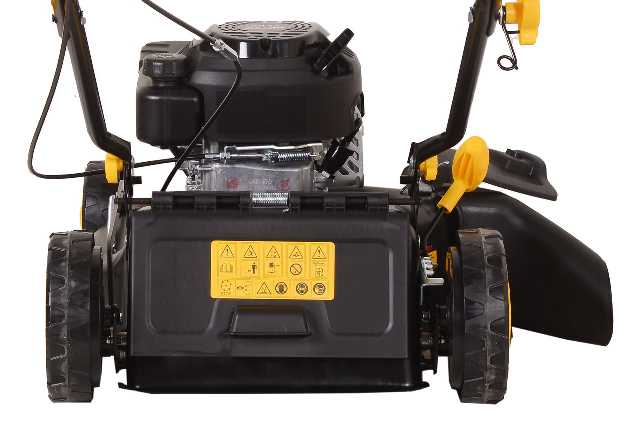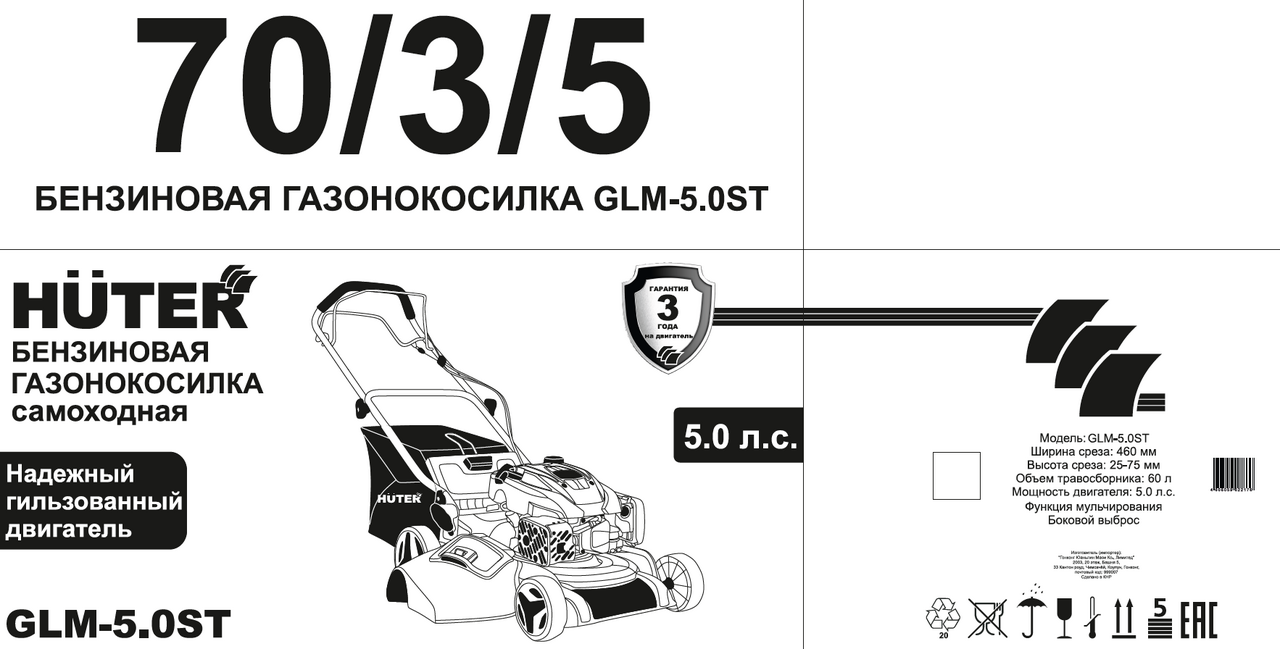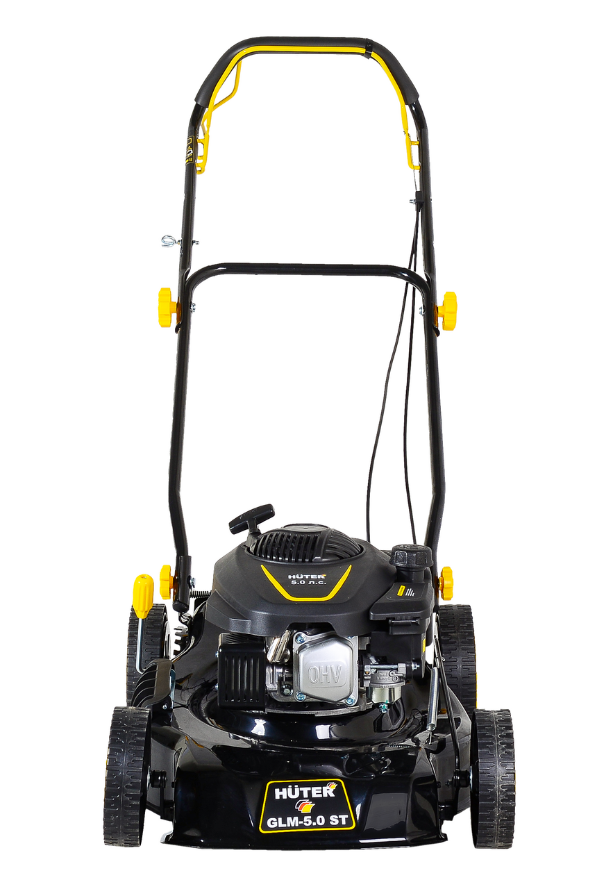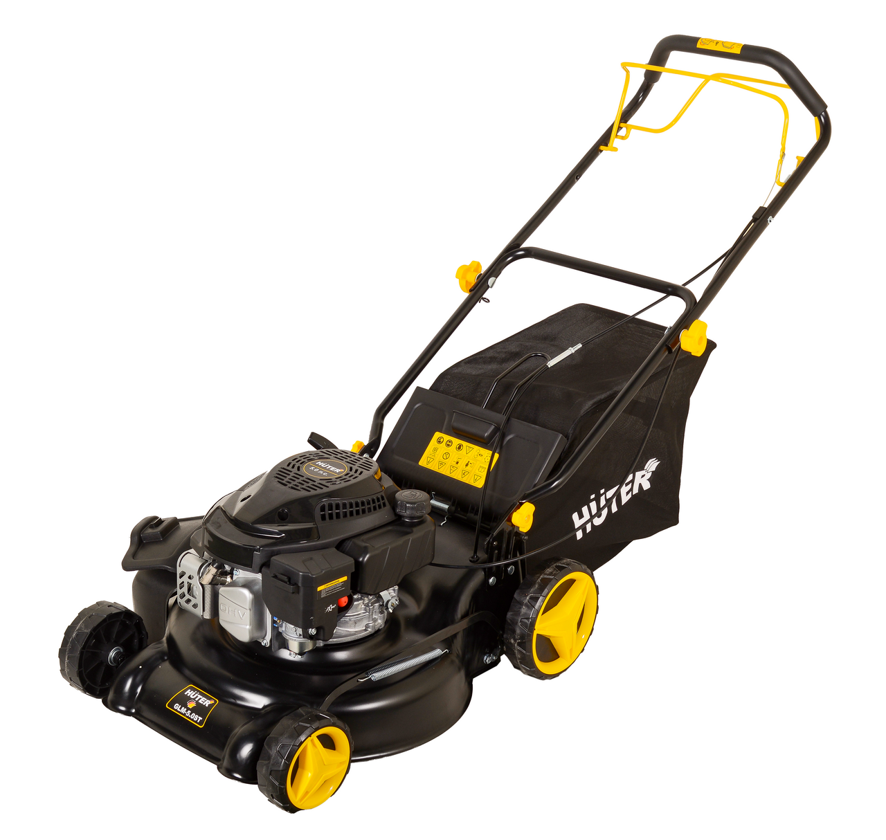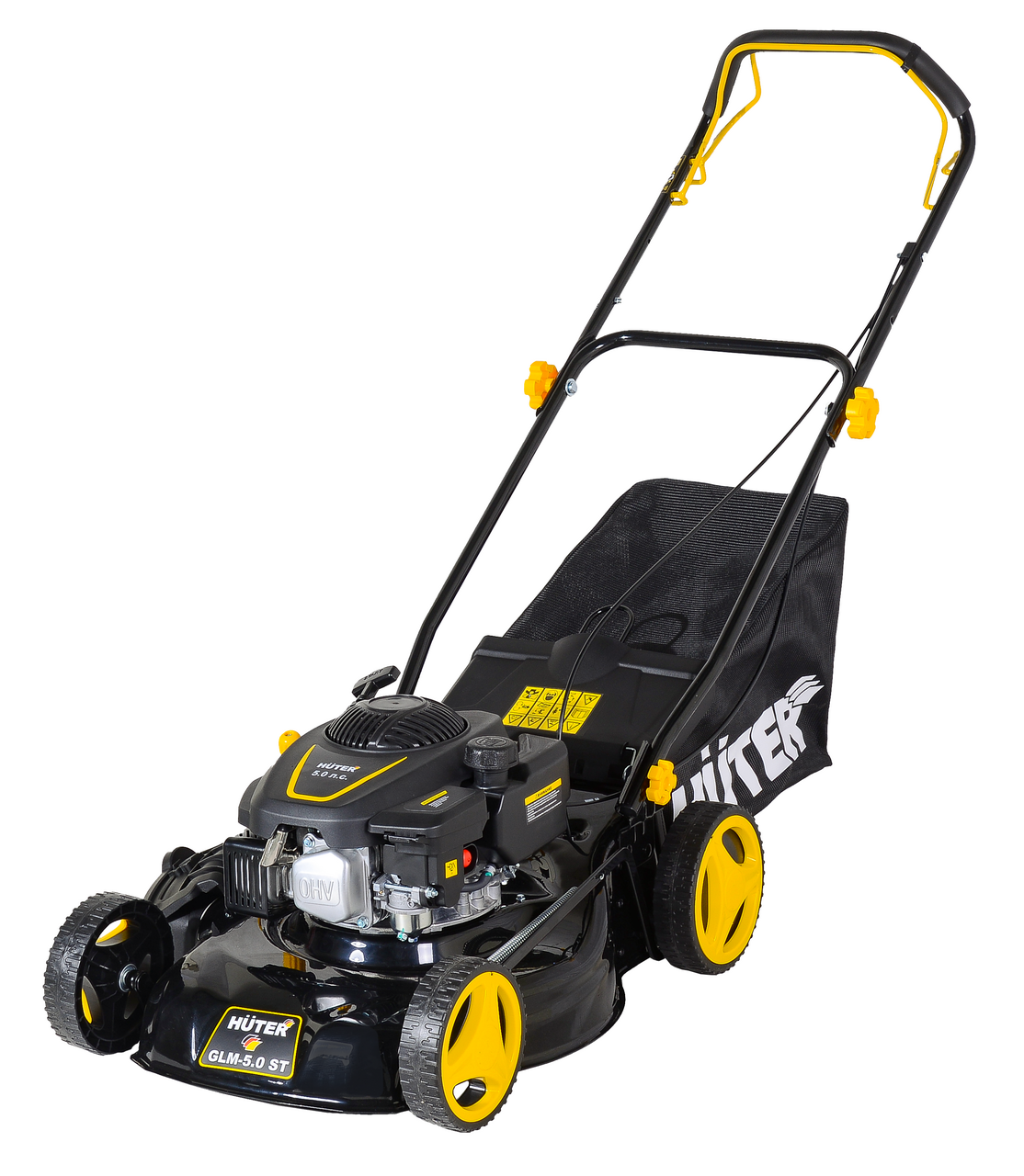 Газонокосилка бензиновая GLM-5.0ST Huter. используется для стрижки газонов площадью до 1000 квадратных метров. Агрегат оснащен четырехтактным одноцилиндровым двигателем мощностью 5 литров в секунду. В качестве топлива рекомендуется использовать бензин АИ-92, так бензокосилка прослужит долго. Благодаря ручке регулирования высоты среза, расположенной у заднего правого колеса газонокосилки, можно оперативно регулировать высоту среза в семи положениях от 25 до 75мм.