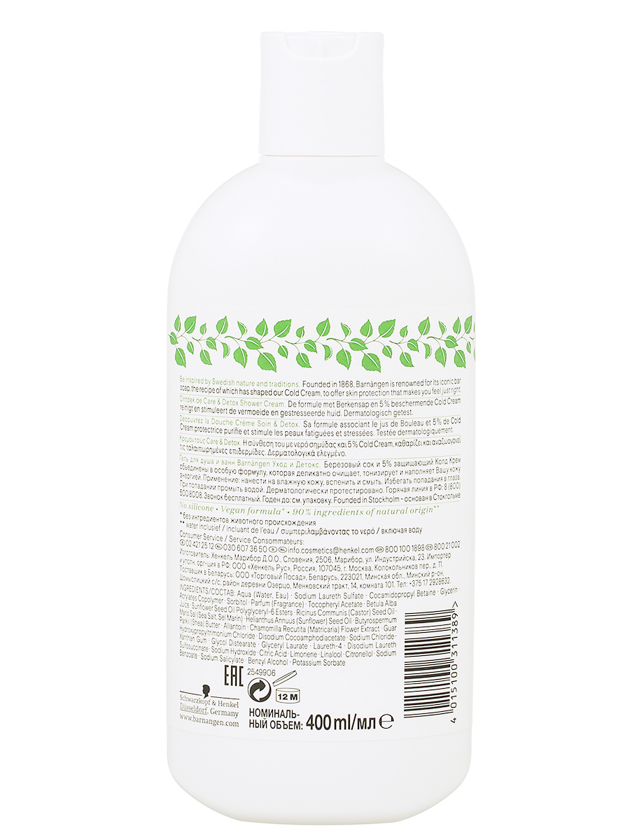 Выпускаемый под брендом Barnangen крем-гель для душа и ванн Care & Detox предназначен для деликатного и эффективного очищения тела от загрязнений. Дерматологически протестированный продукт, изготовленный из высококачественных природных компонентов, отличается нежной текстурой и приятным ароматом. Уникальная витаминизированная формула обладает тонизирующим эффектом и обеспечивает кожу энергией.