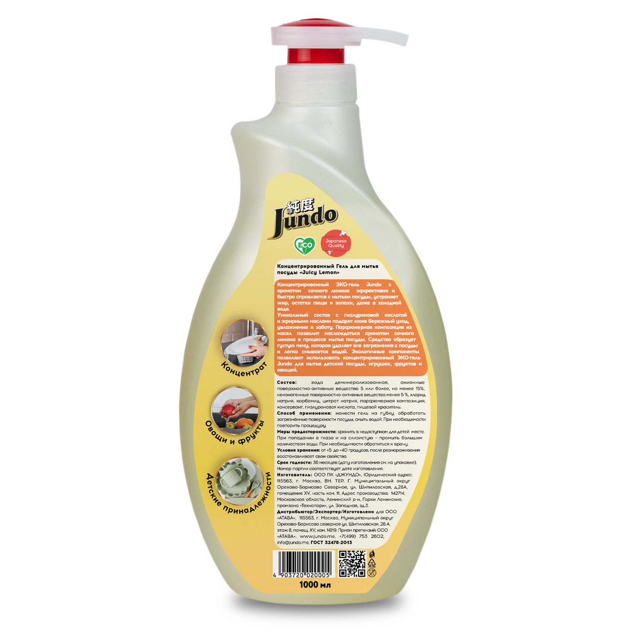 Гель для мытья посуды Jundo Juicy lemon с дозатором, 1л